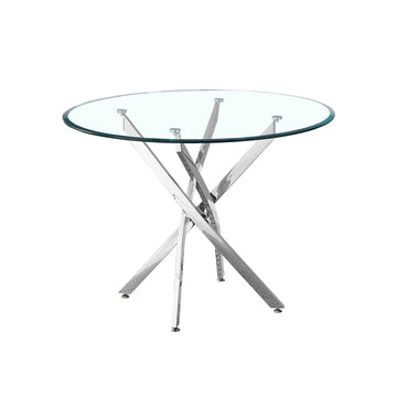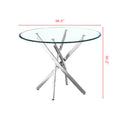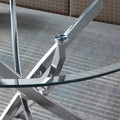 Contemporary Round Clear Dining Tempered Glass Table With Silver Finish Stainless Steel Legs Silver Tempered Glass