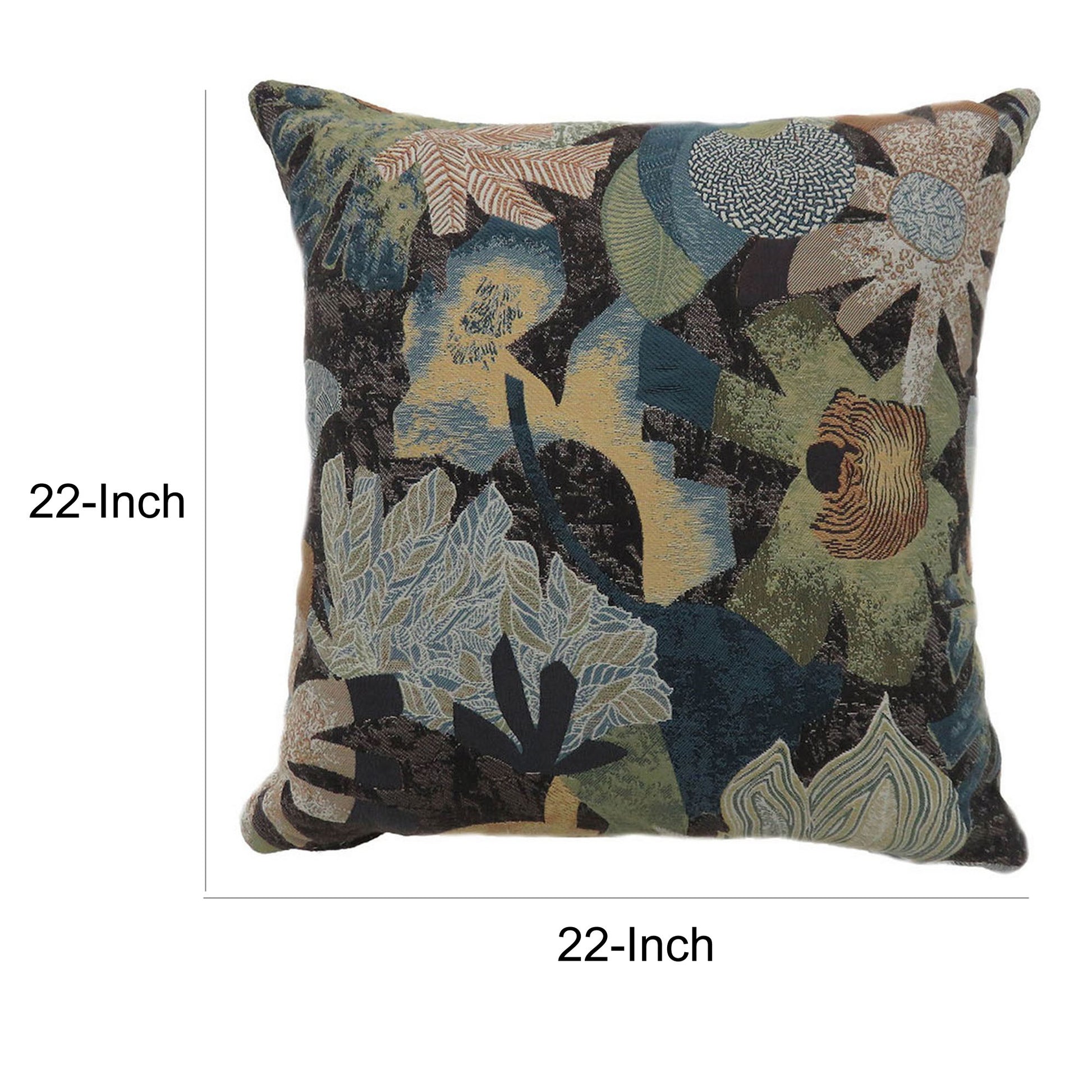 Contemporary Style Floral Designed Set Of 2 Throw Pillows, Multicolor Multicolor Polyester