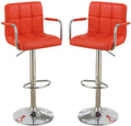 Contemporary Style Red Faux Leather Bar Stool Counter Height Chairs Set Of 2 Adjustable Height Kitchen Island Stools Red Dining Room Contemporary,Modern Fabric