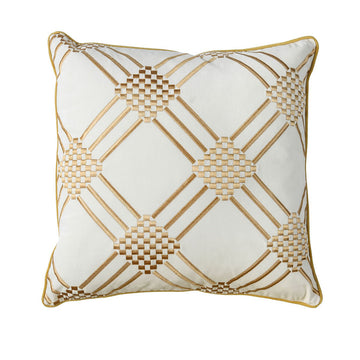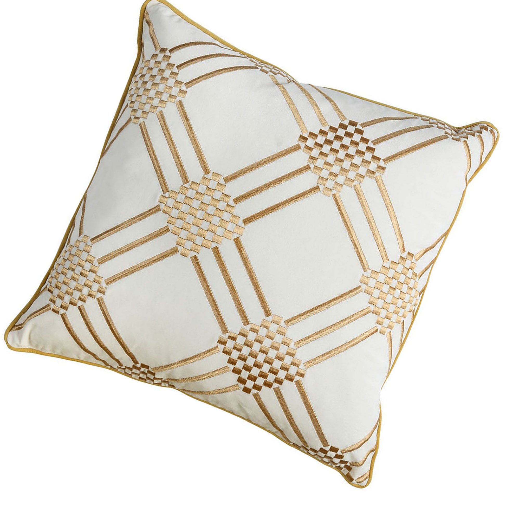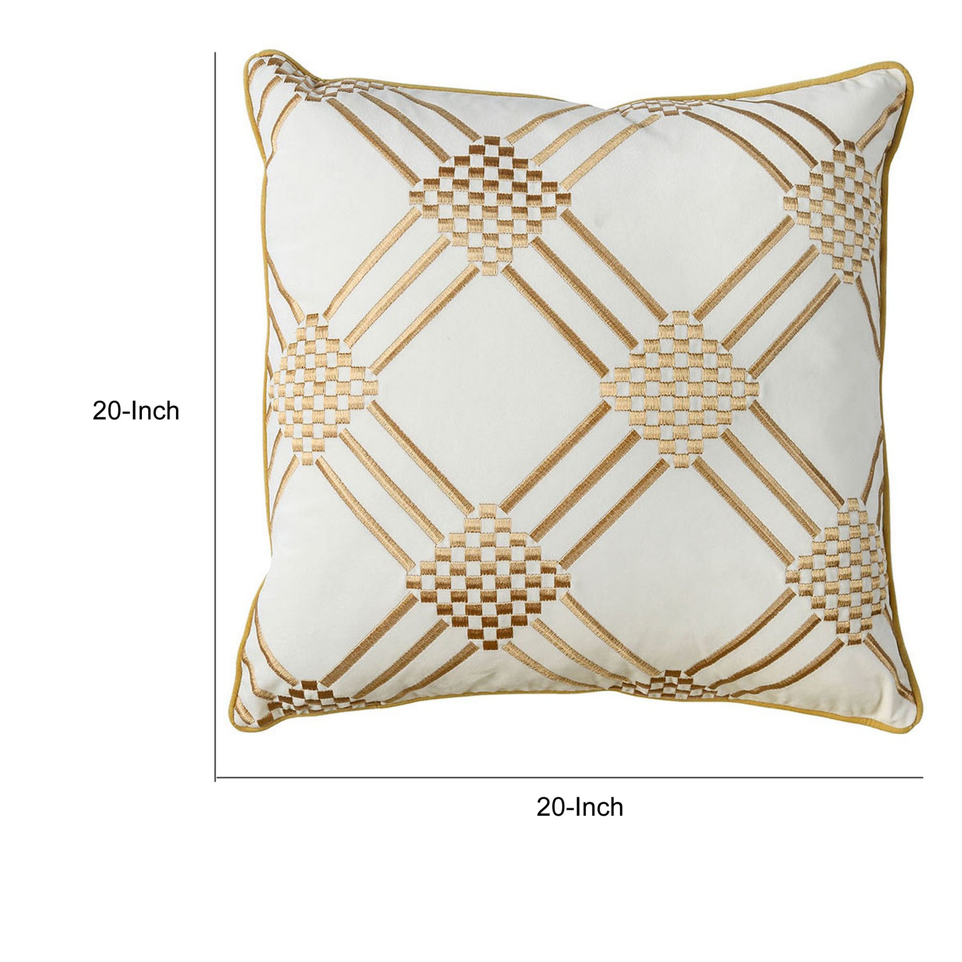 Contemporary Style Set Of 2 Throw Pillows With Diamond Patterns, Ivory, Yellow Ivory Polyester
