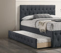 Contemporary Twin Size Bed W Trundle Slats Charcoal Burlap Upholstered Button Tufted Headboard Footboard Youth Bedroom Furniture Wooden Slats 1Pc Bed Charcoal Grey Bedroom Contemporary,Modern,Transitional Mdf Particle Board