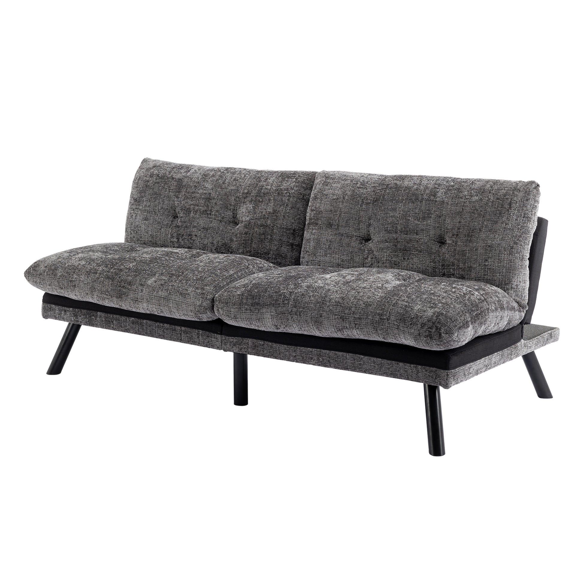 Convertible Sofa Bed Loveseat Futon Bedadjustable Lounge Couch With Metal Legs,Futon Sets For Compact Living Space Chenille Grey Grey Upholstered