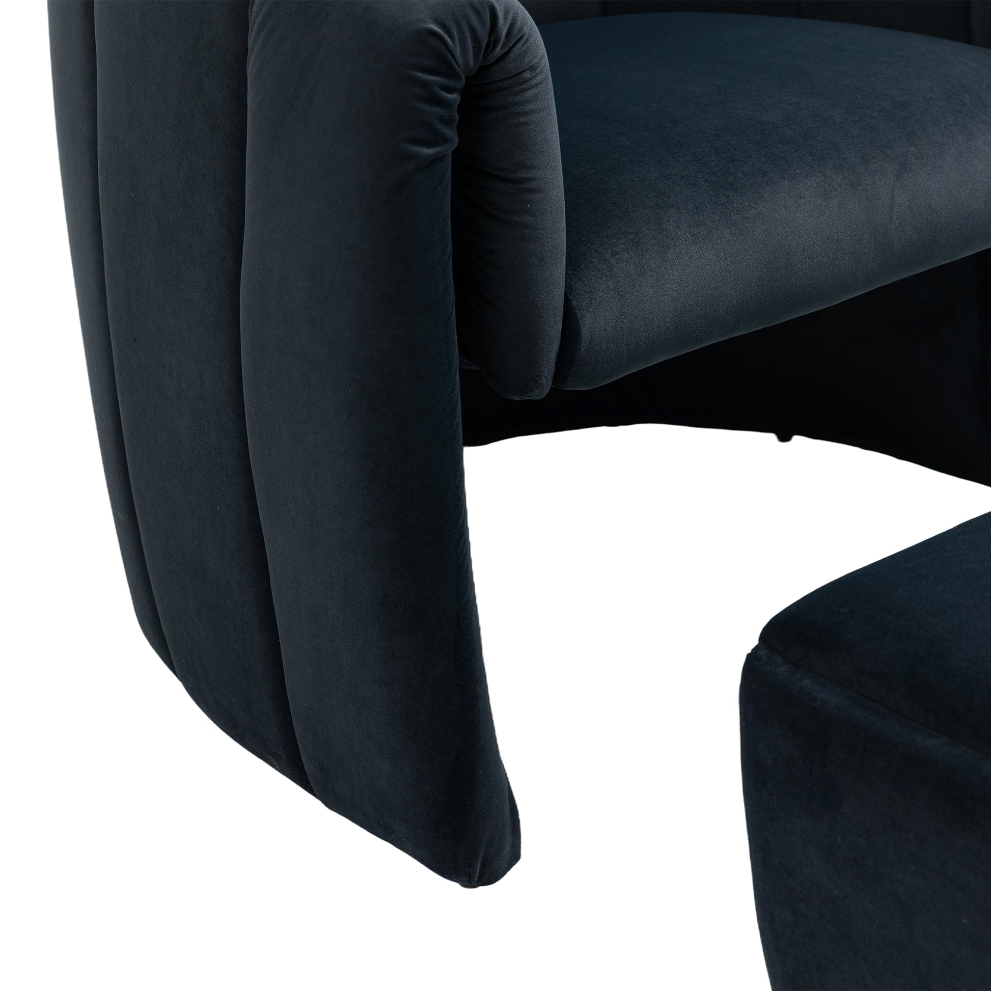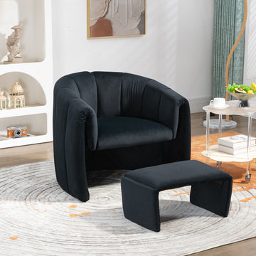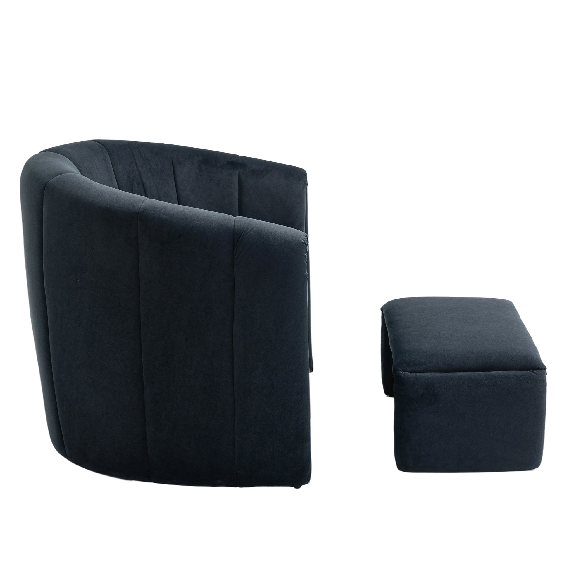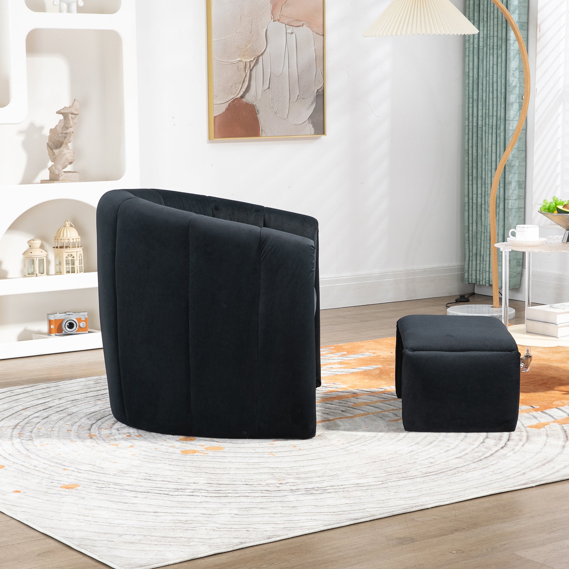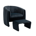 Coolmore Accent Chair With Ottoman, Mid Century Modern Barrel Chair Upholstered Club Tub Round Arms Chair For Living Room Bedroom Office Black Velvet Black Foam Velvet