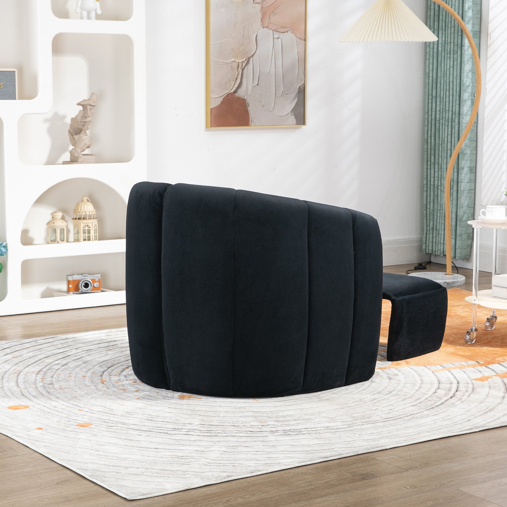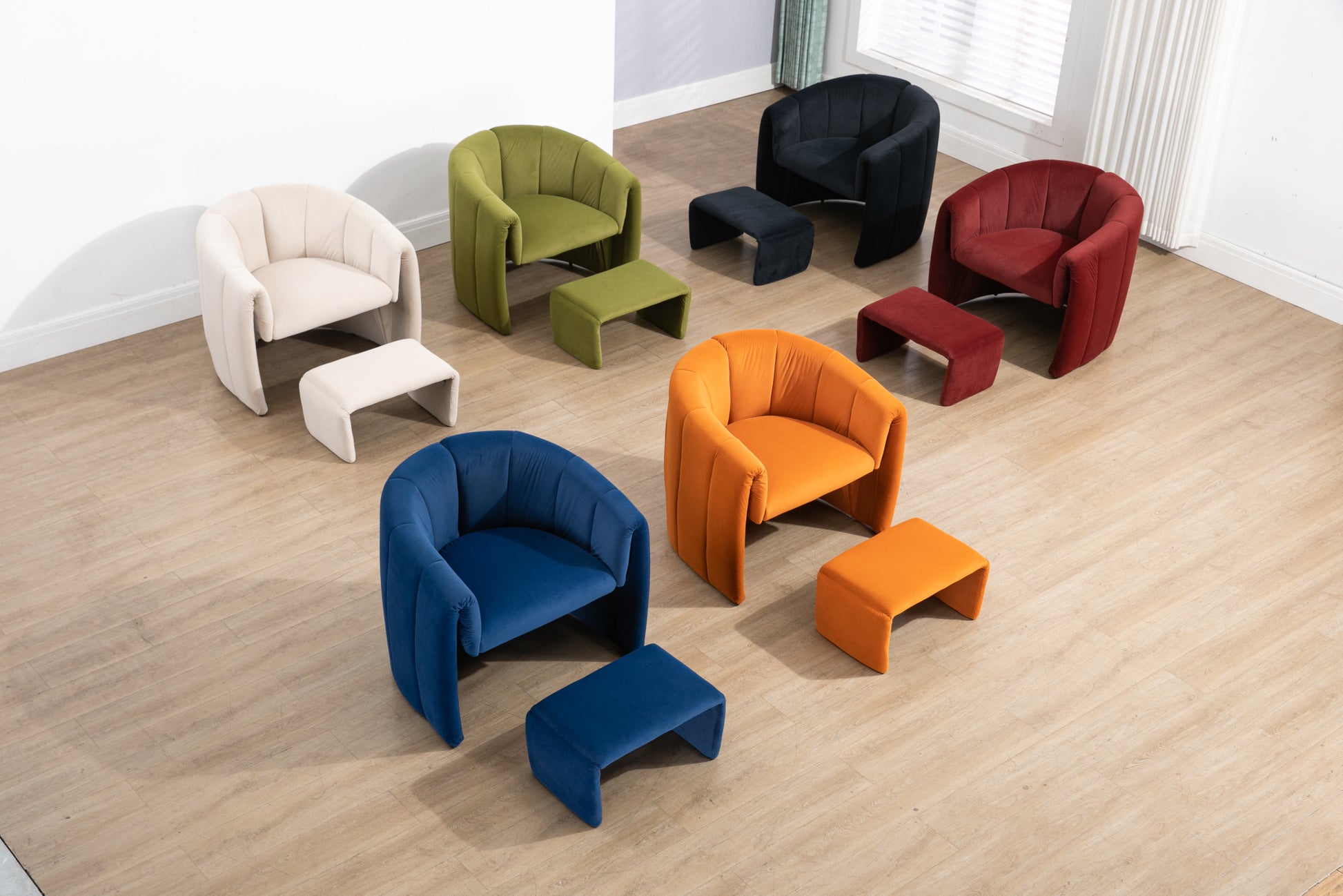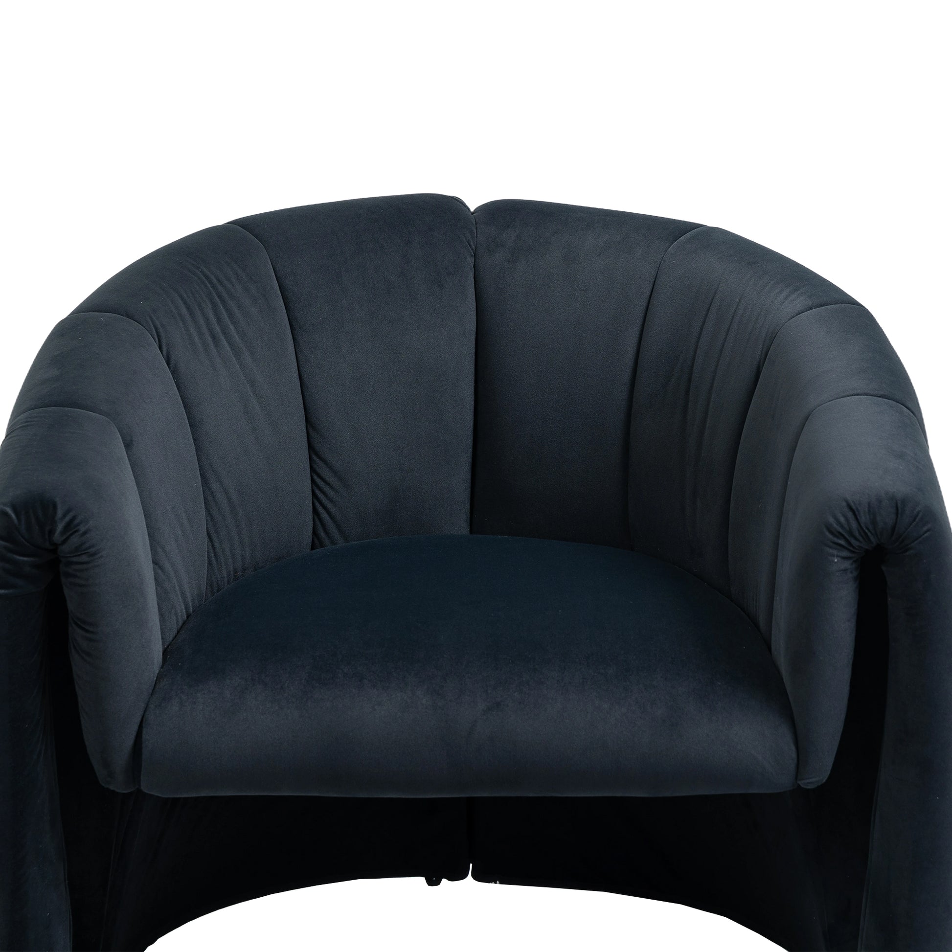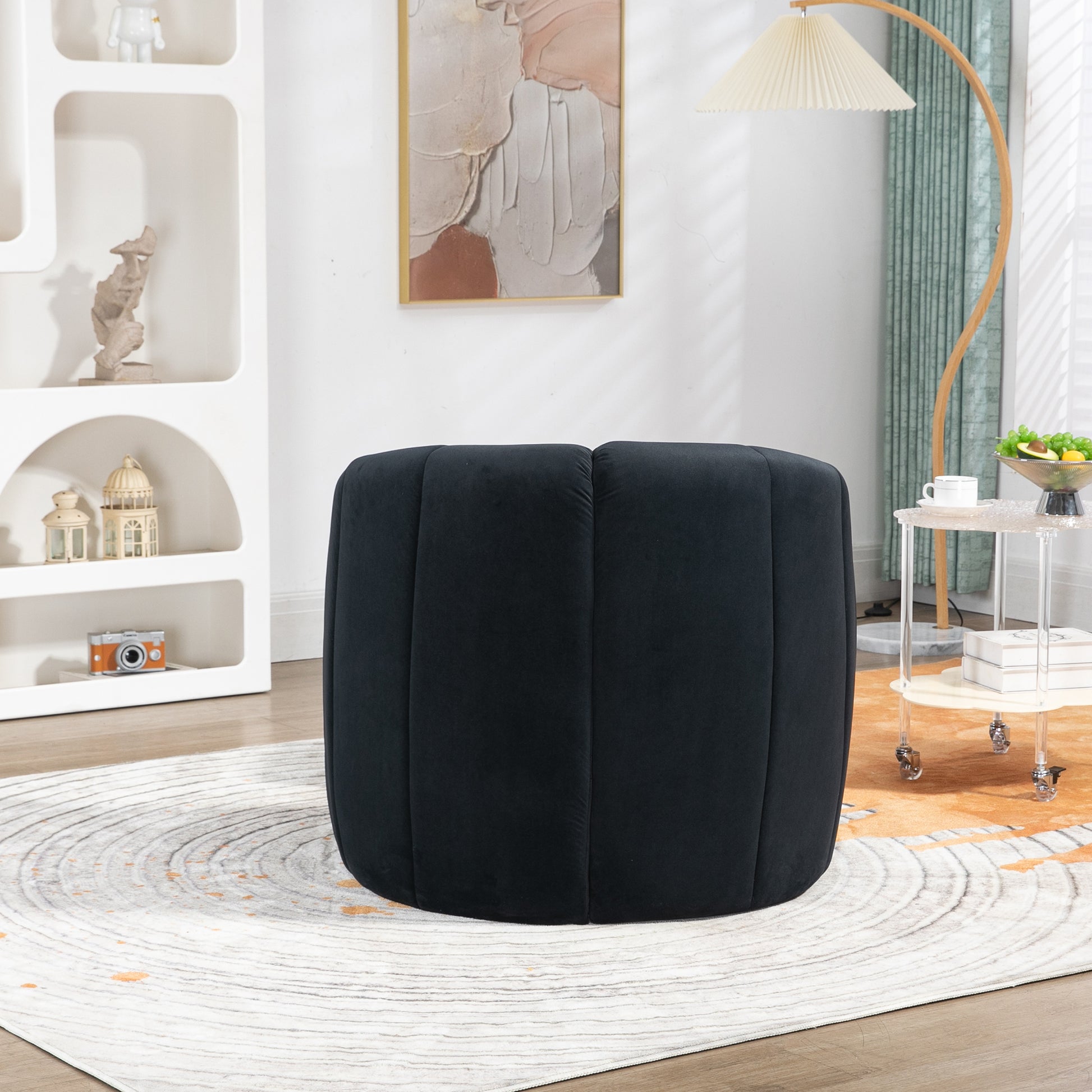 Coolmore Accent Chair With Ottoman, Mid Century Modern Barrel Chair Upholstered Club Tub Round Arms Chair For Living Room Bedroom Office Black Velvet Black Foam Velvet