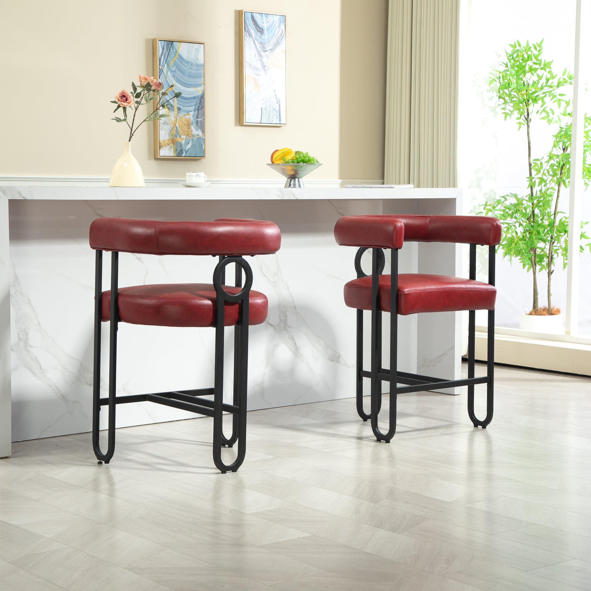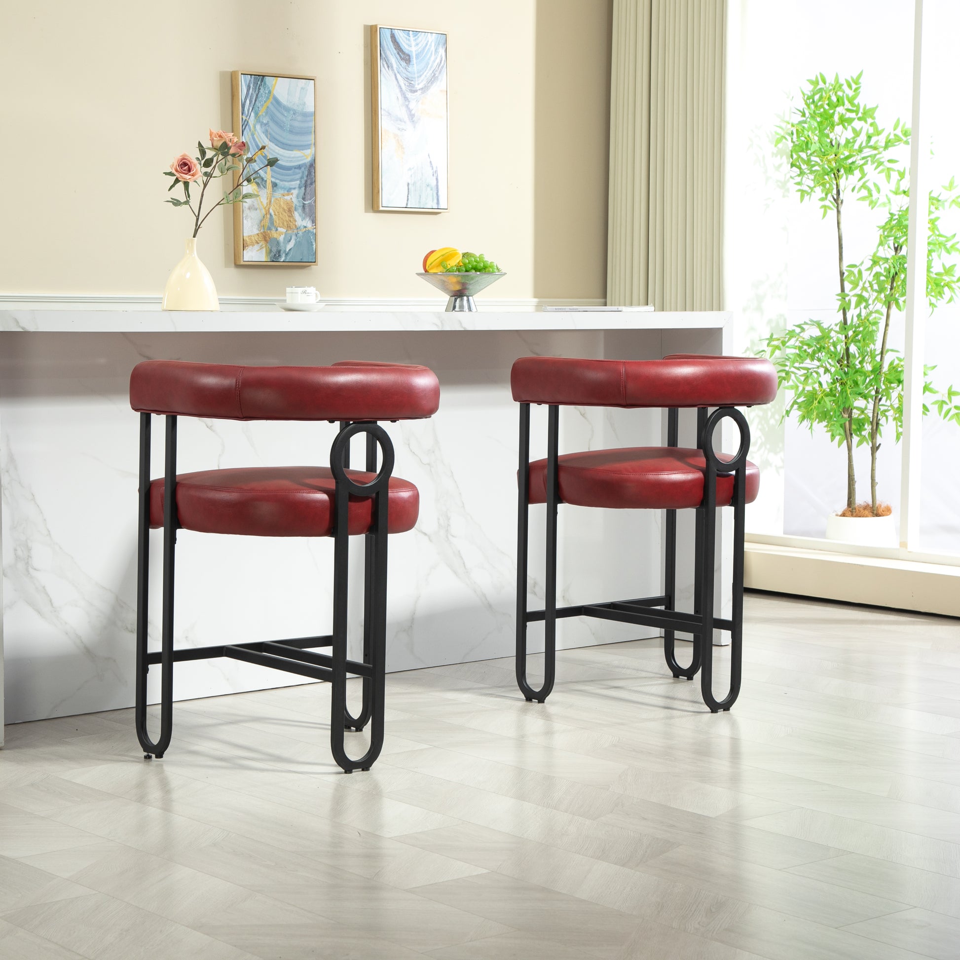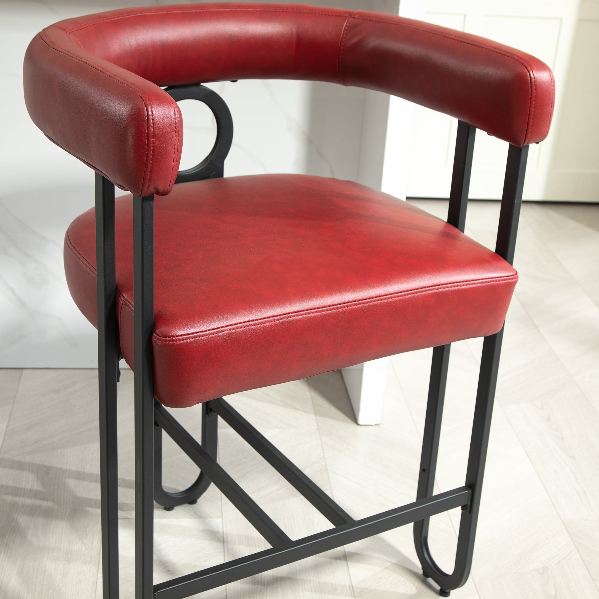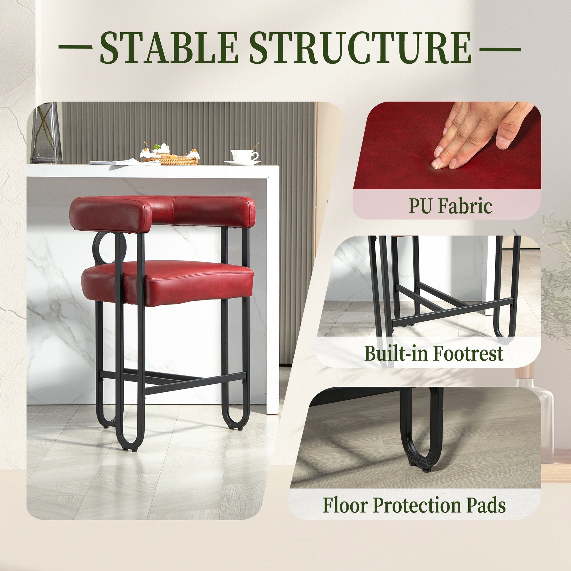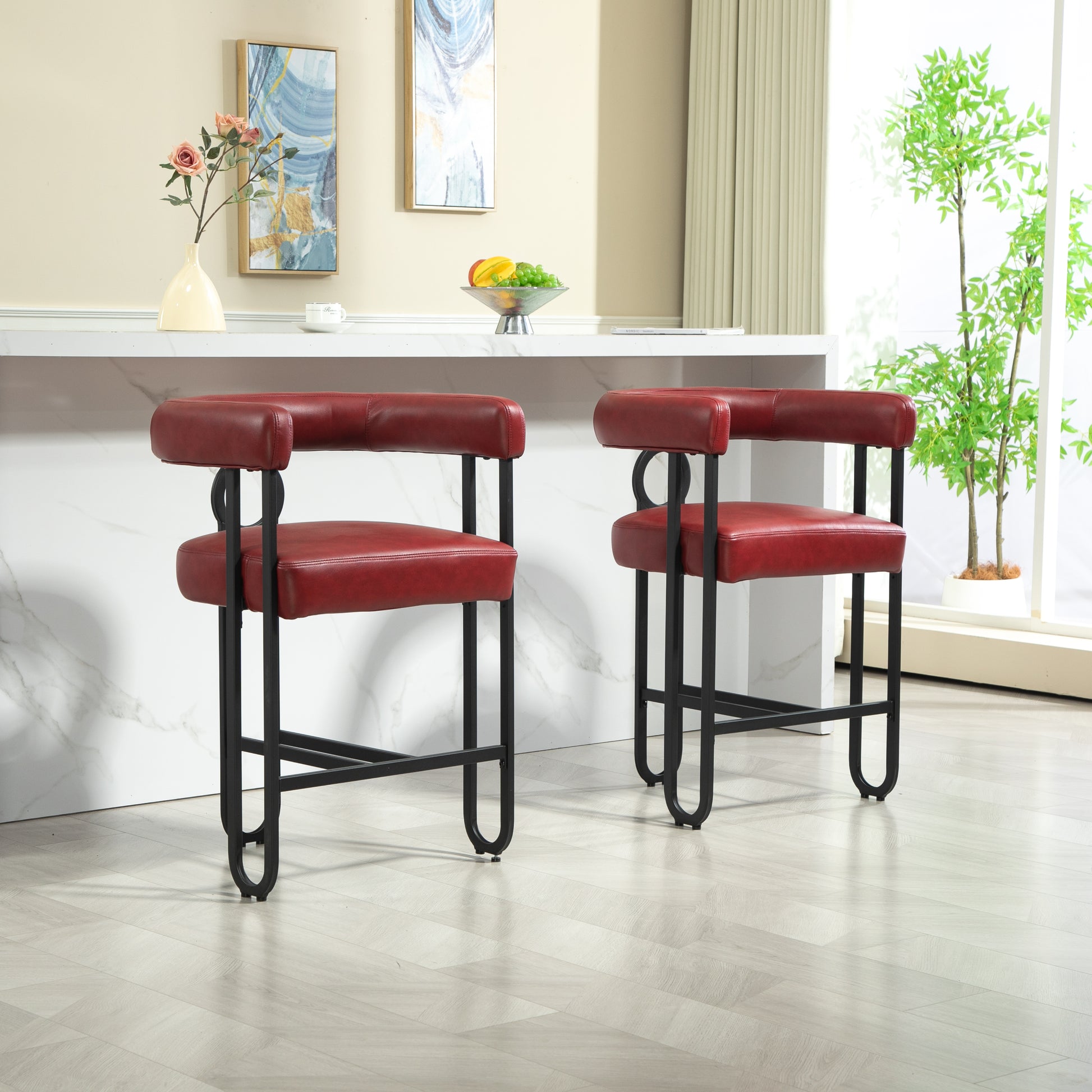 Coolmore Bar Stools Set Of 1, Modern Bar Stool With Back, Black Metal Frames, Upholstered Bar Stools For Kitchen Island, Pub, Club Wine Red Pu Wine Red Primary Living Space Foam Pu