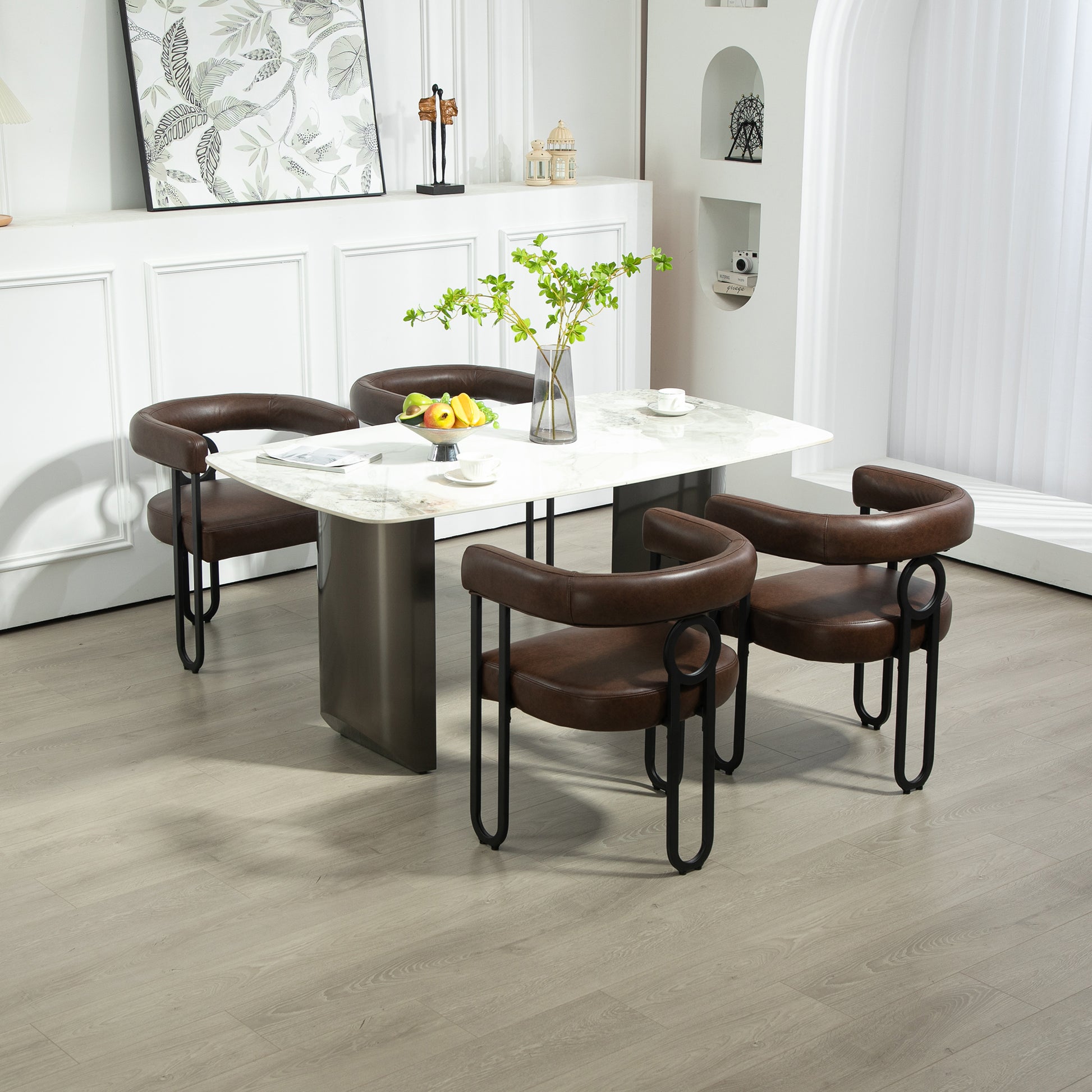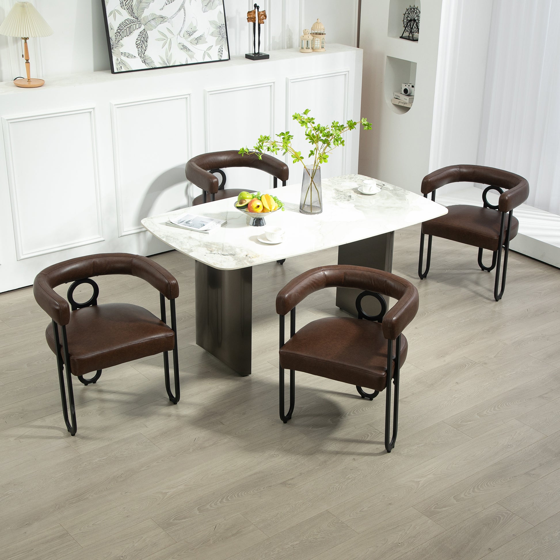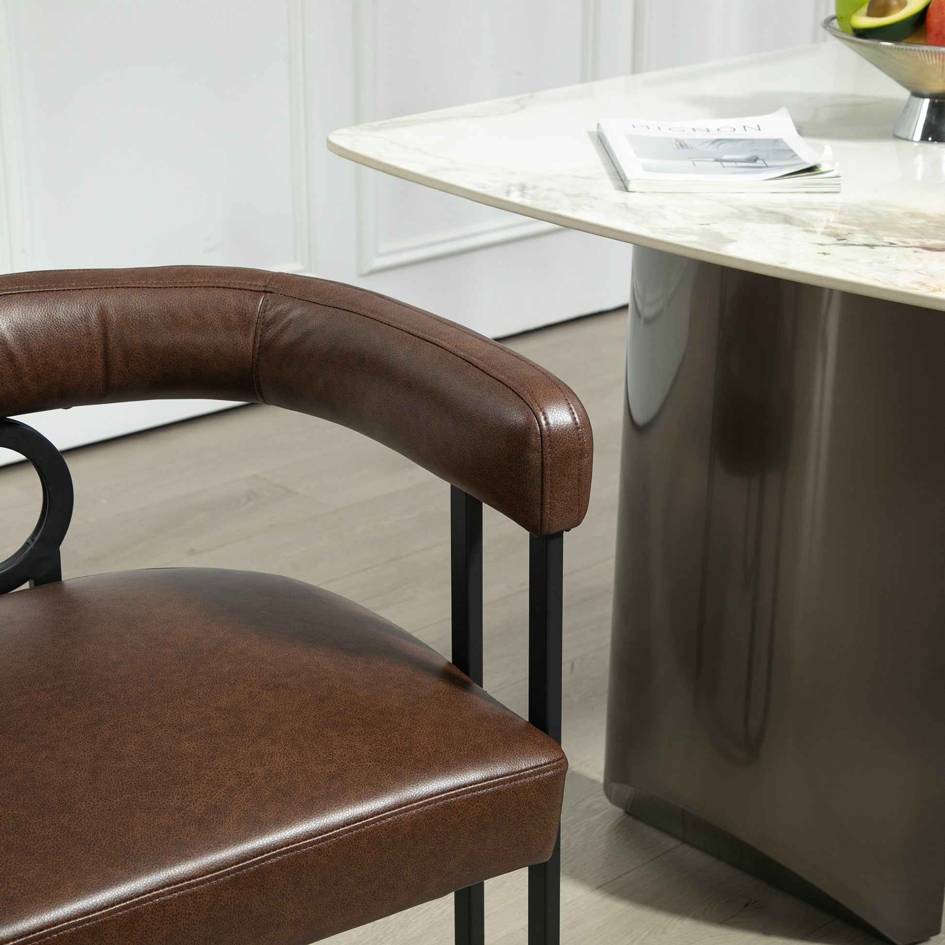 Coolmore Contemporary Designed Chenille Fabric Upholstered Accent Dining Chair Barrel Side Chairs Kitchen Armchair For Living Room Set Of 1 Dark Brown Pu Dark Brown Primary Living Space Foam Pu
