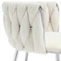 Coolmore Leisure Dining Chairs Accent Chair Velvet Accent Lounge Chair With Metal Feet 2Pc Set Ivory Boucle