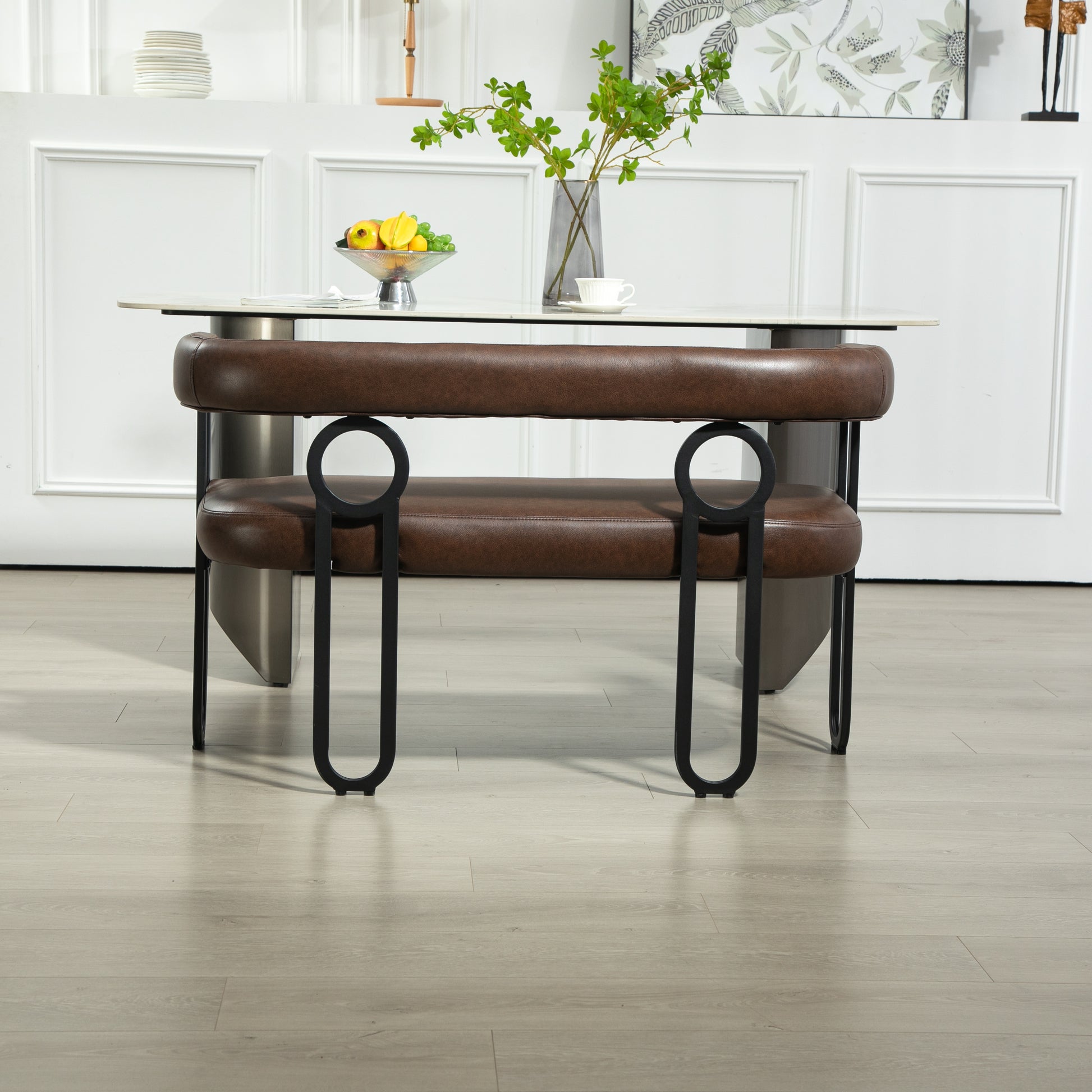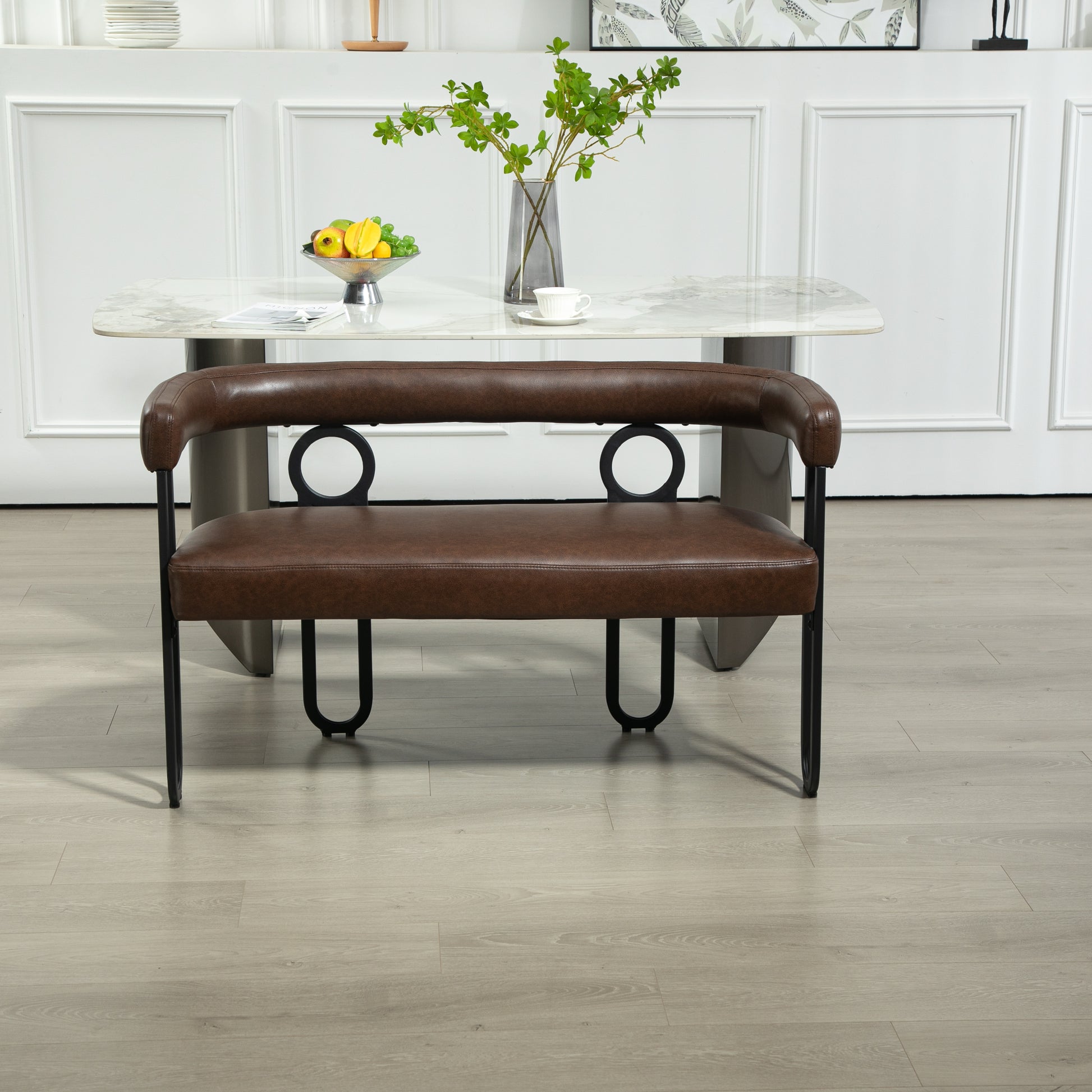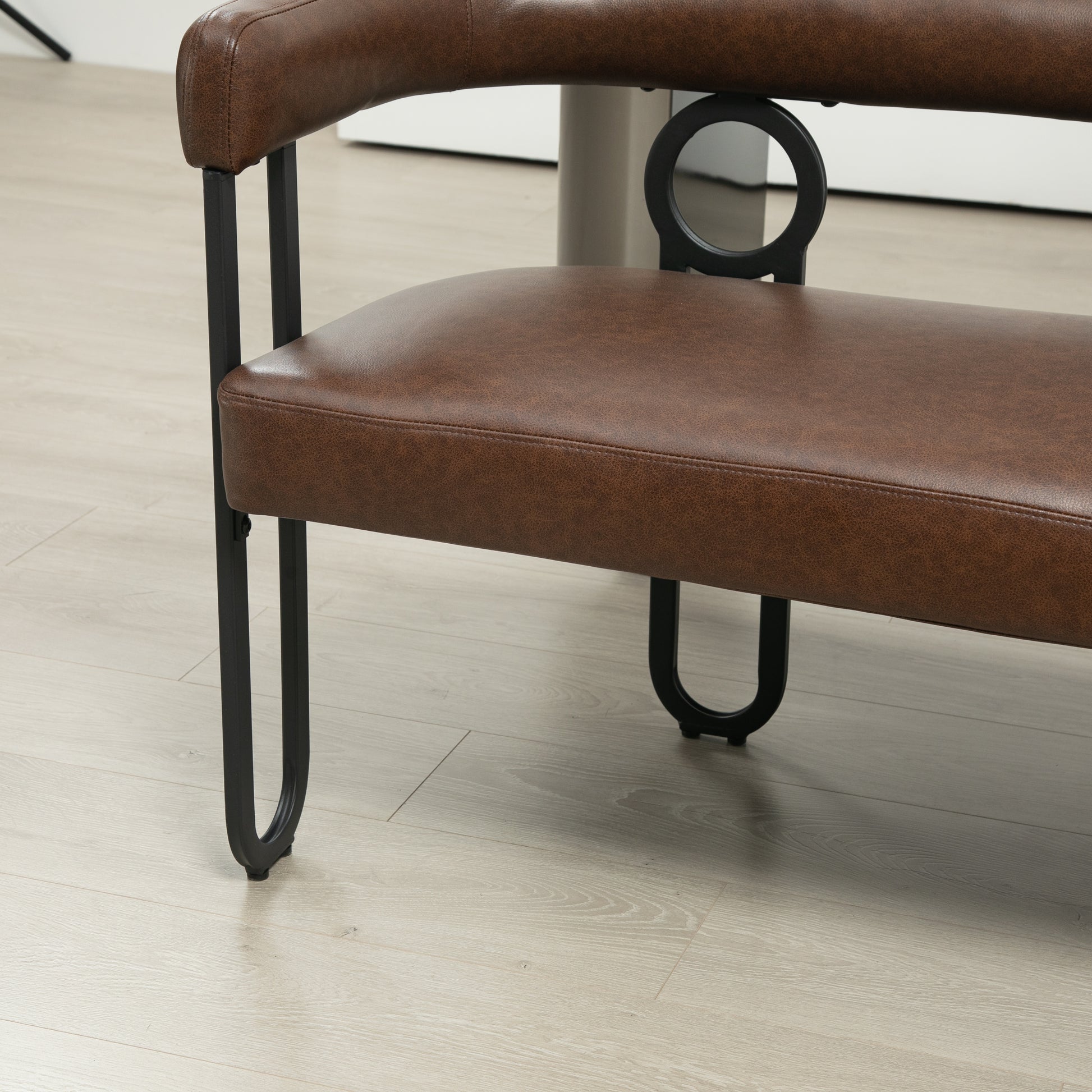 Coolmore Modern Loveseat 2 Seater Sofa Chenille Fabric Couch With Arms And Metal Legs For Living Room, Home Office, Studio Dark Brown Pu Dark Brown Primary Living Space Soft Foam Pu