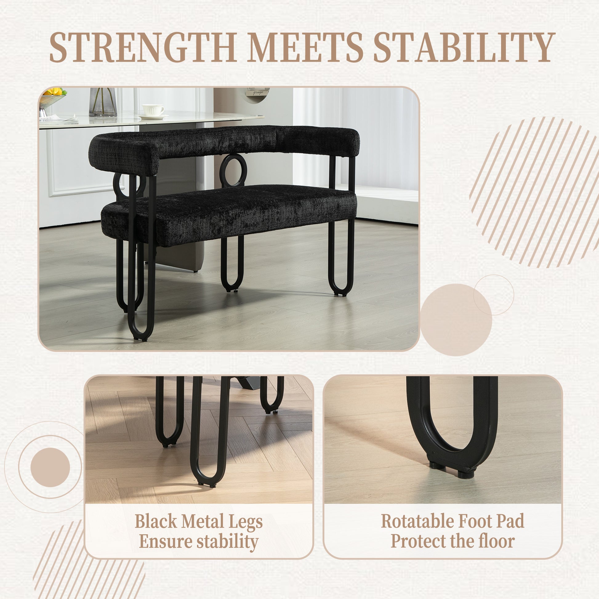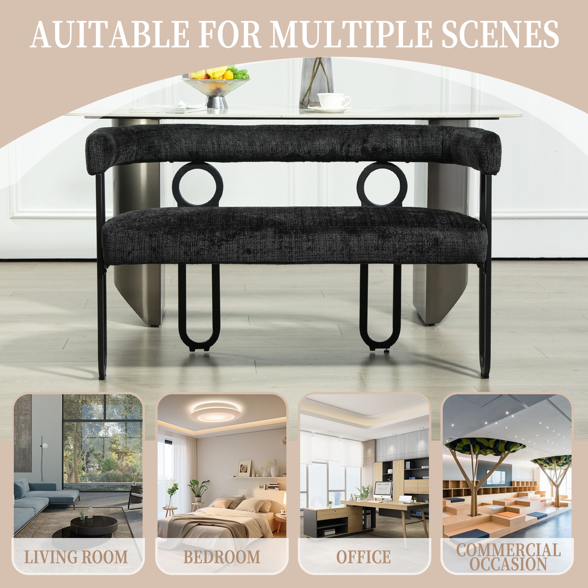 Coolmore Modern Loveseat 2 Seater Sofa Chenille Fabric Couch With Arms And Metal Legs For Living Room, Home Office, Studio Black Chenille Black Primary Living Space Soft Foam Chenille