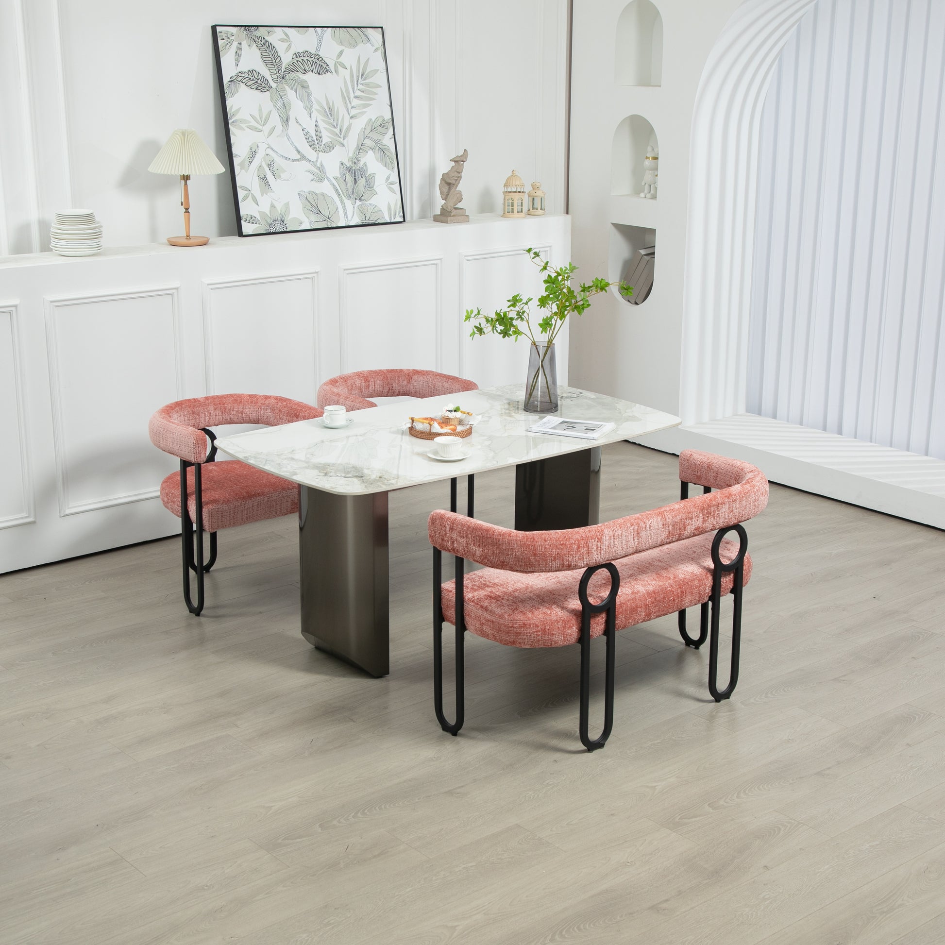 Coolmore Modern Loveseat 2 Seater Sofa Chenille Fabric Couch With Arms And Metal Legs For Living Room, Home Office, Studio Pink Chenille Pink Primary Living Space Soft Foam Chenille