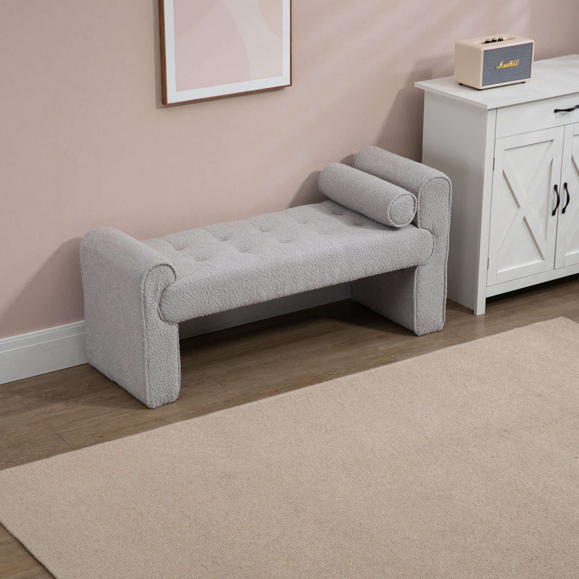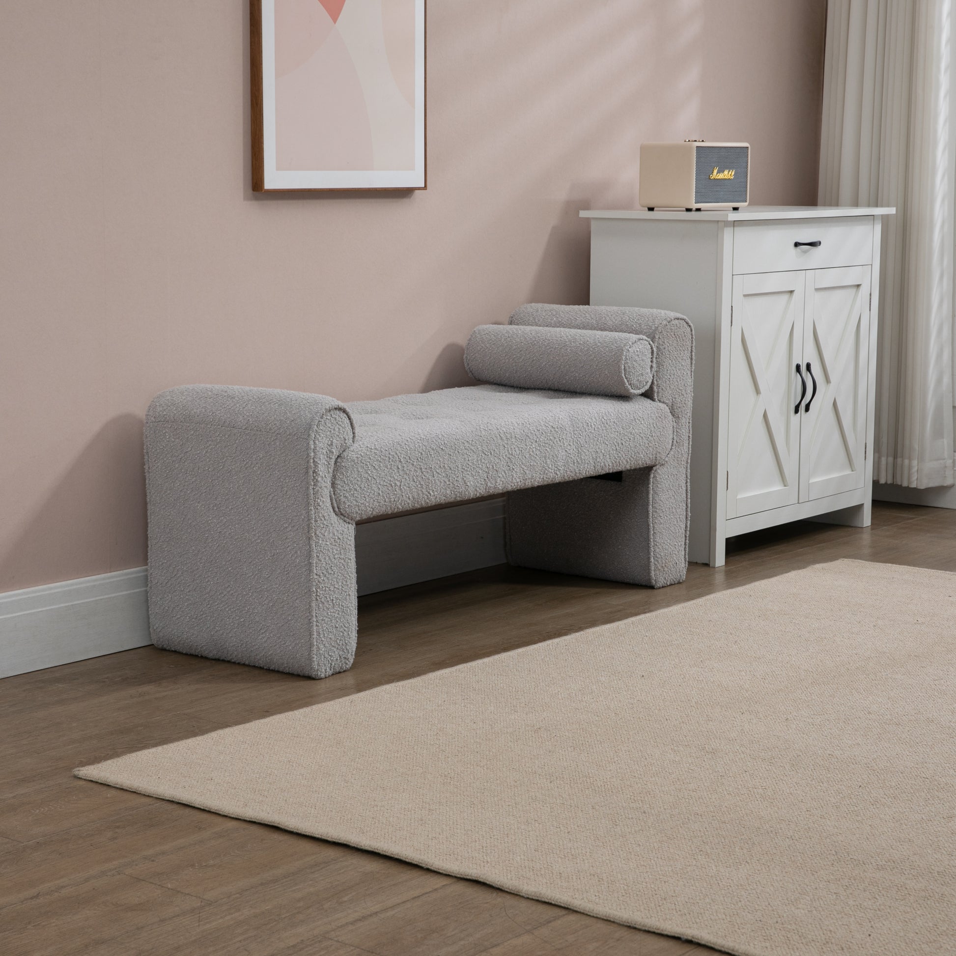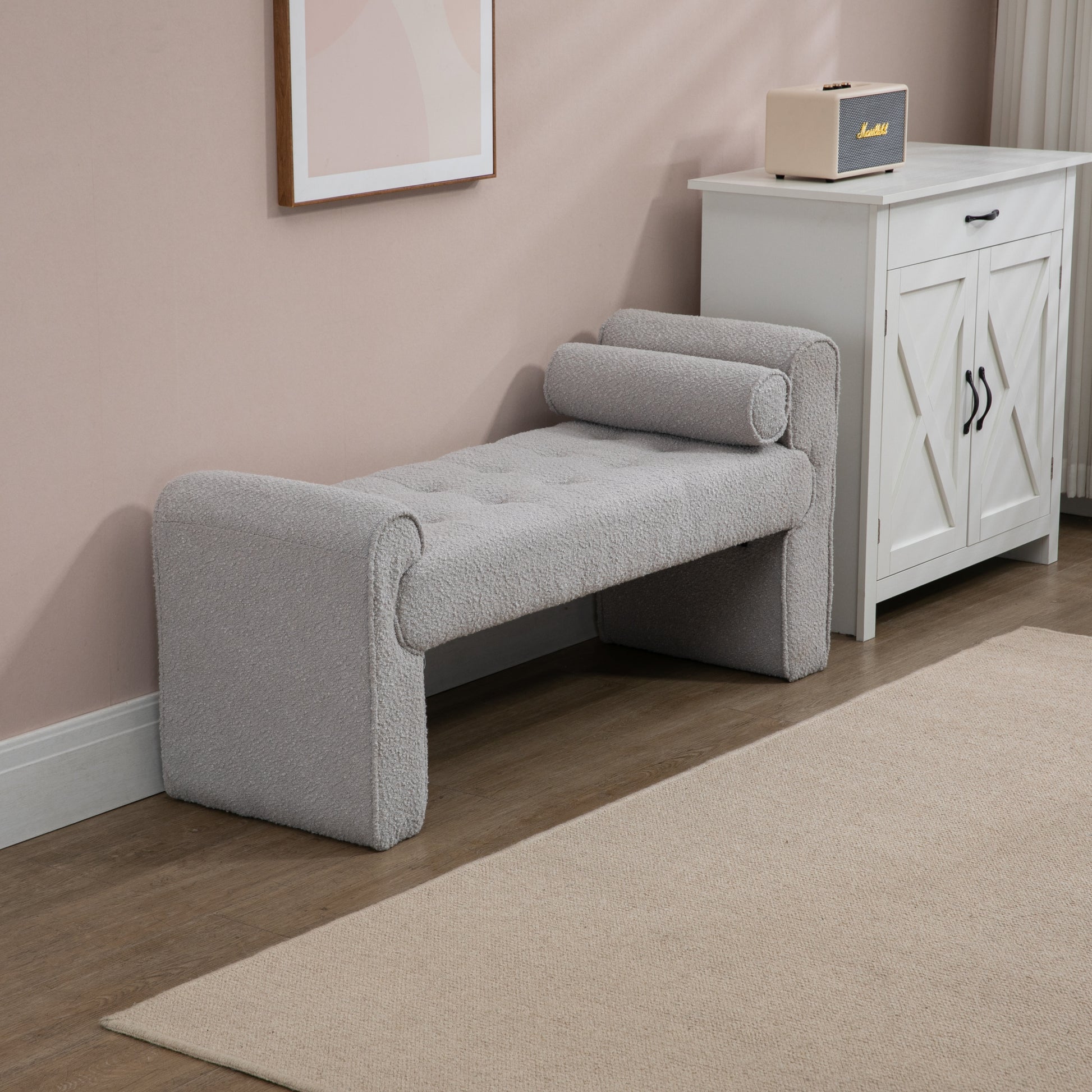 Coolmore Modern Ottoman Bench, Bed Stool Made Of Loop Gauze, End Bed Bench, Footrest For Bedroom, Living Room, End Of Bed, Hallway Light Gray Boucle