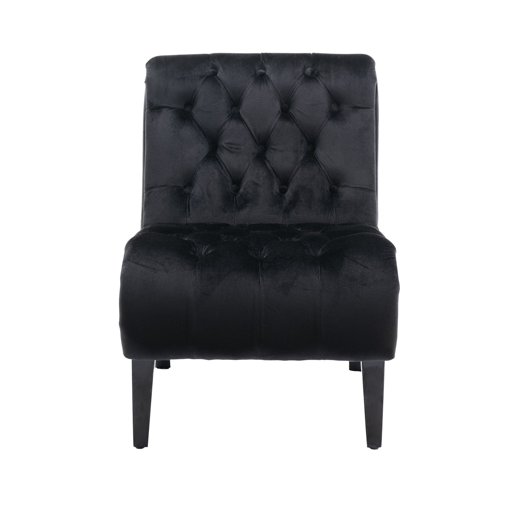 Coolmore Modern Velvet Armless Accent Living Room Chair Leisure Chair,Upholstered Fabric Button Comfortable Chair With Wooden Legs For Bedroom, Living Room, Office Black Velvet Black Foam Velvet