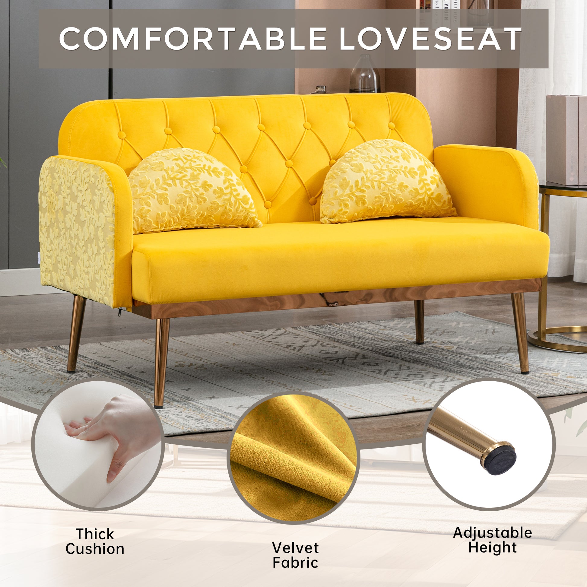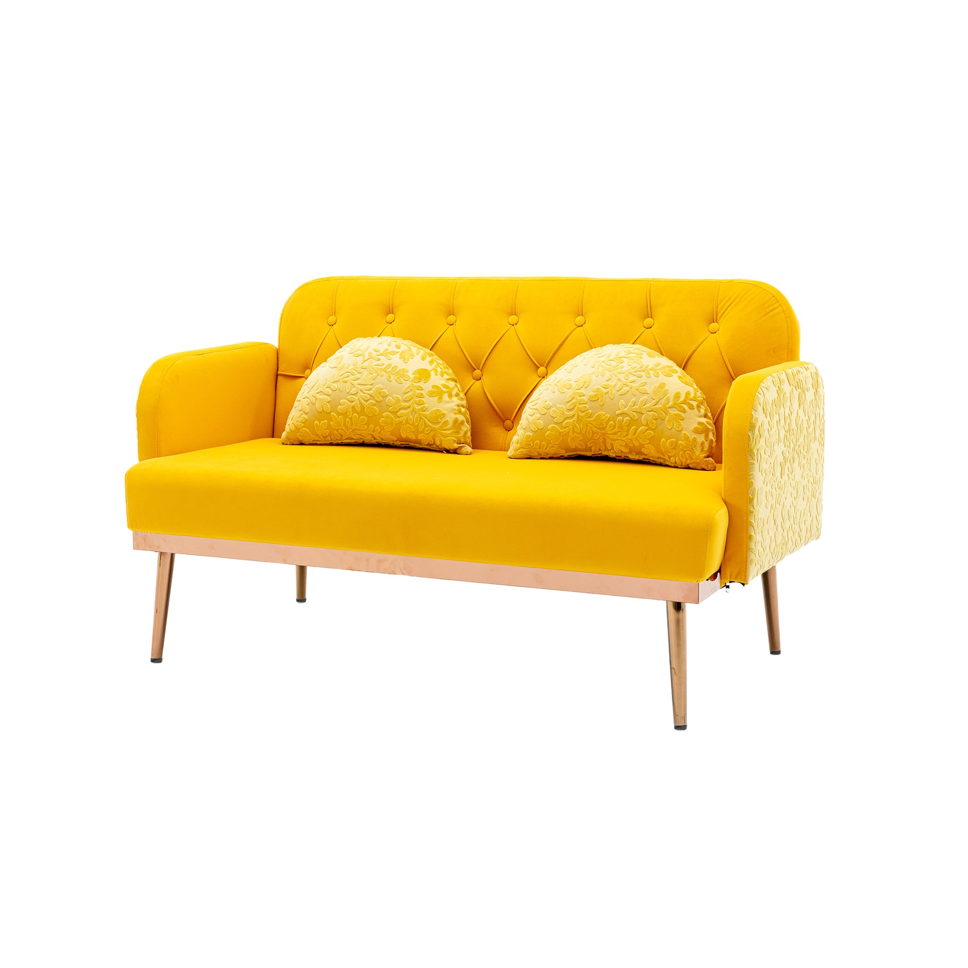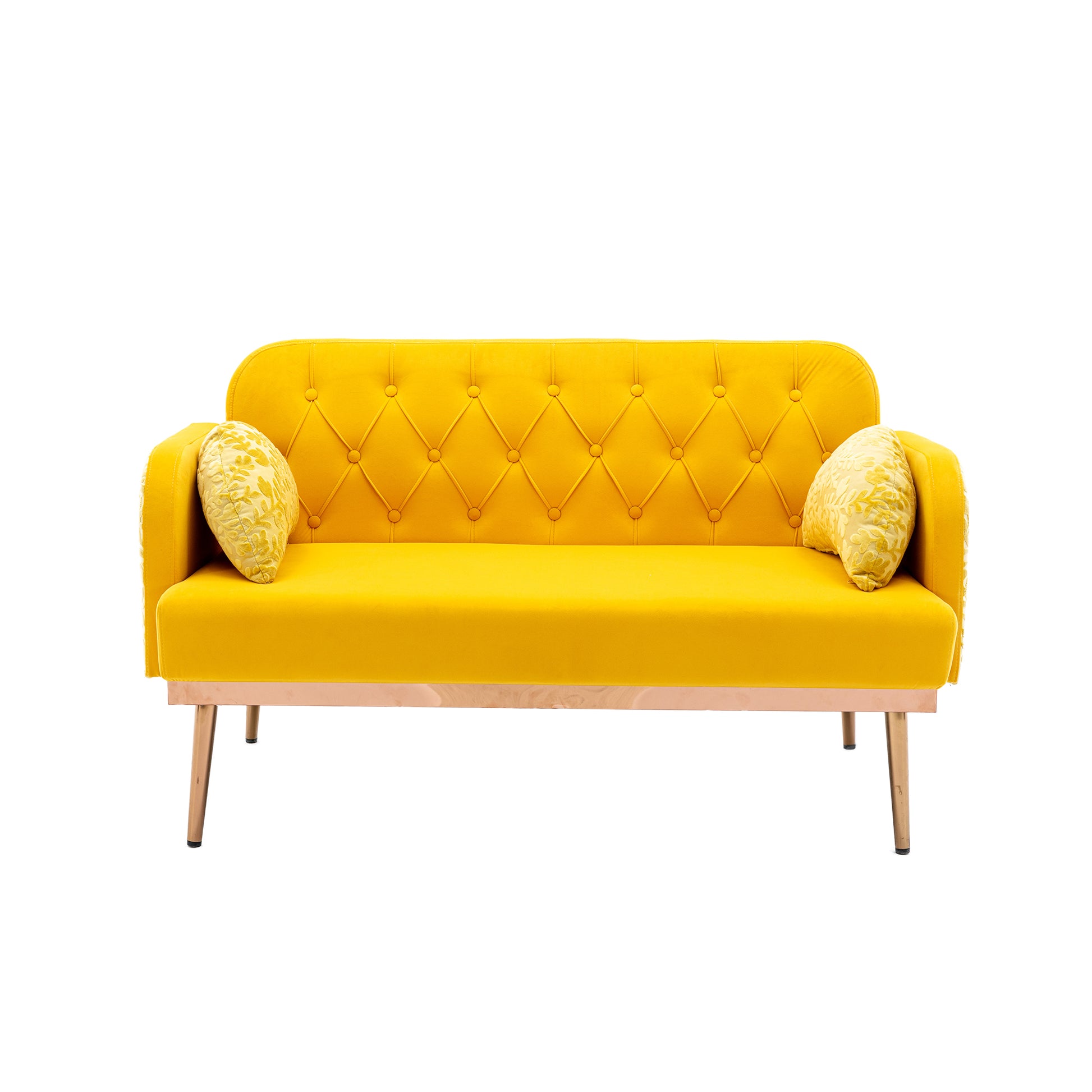Coolmore Modern Velvet Loveseat Sofacomfy Upholstered 2 Seater Sofa With Gold Metal Legs, Small Loveseat Accent Couch For Living Bedroom Leisure Areas Yellow Velvet Yellow Foam Polyester 2 Seat