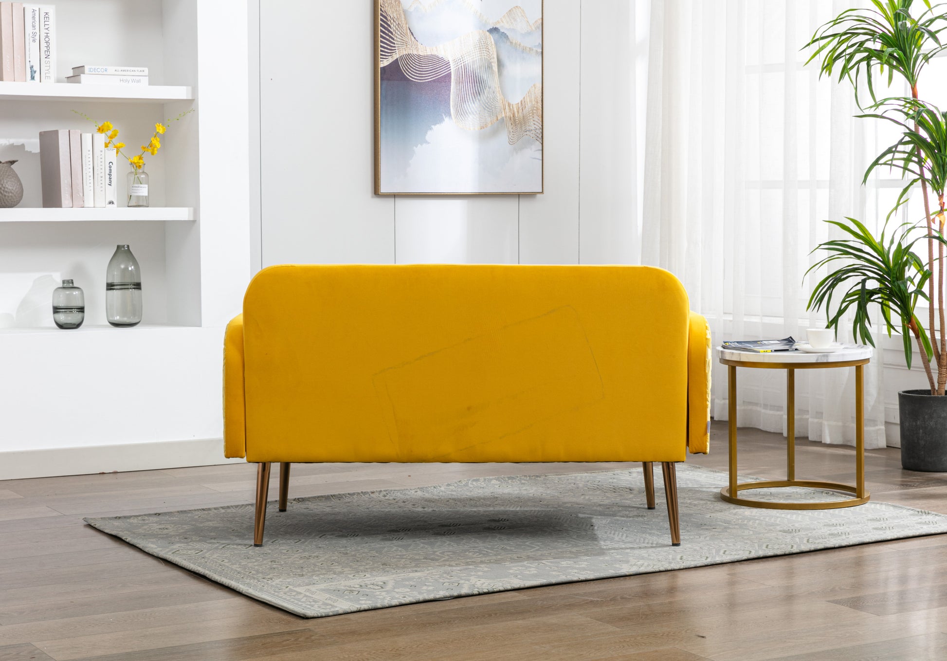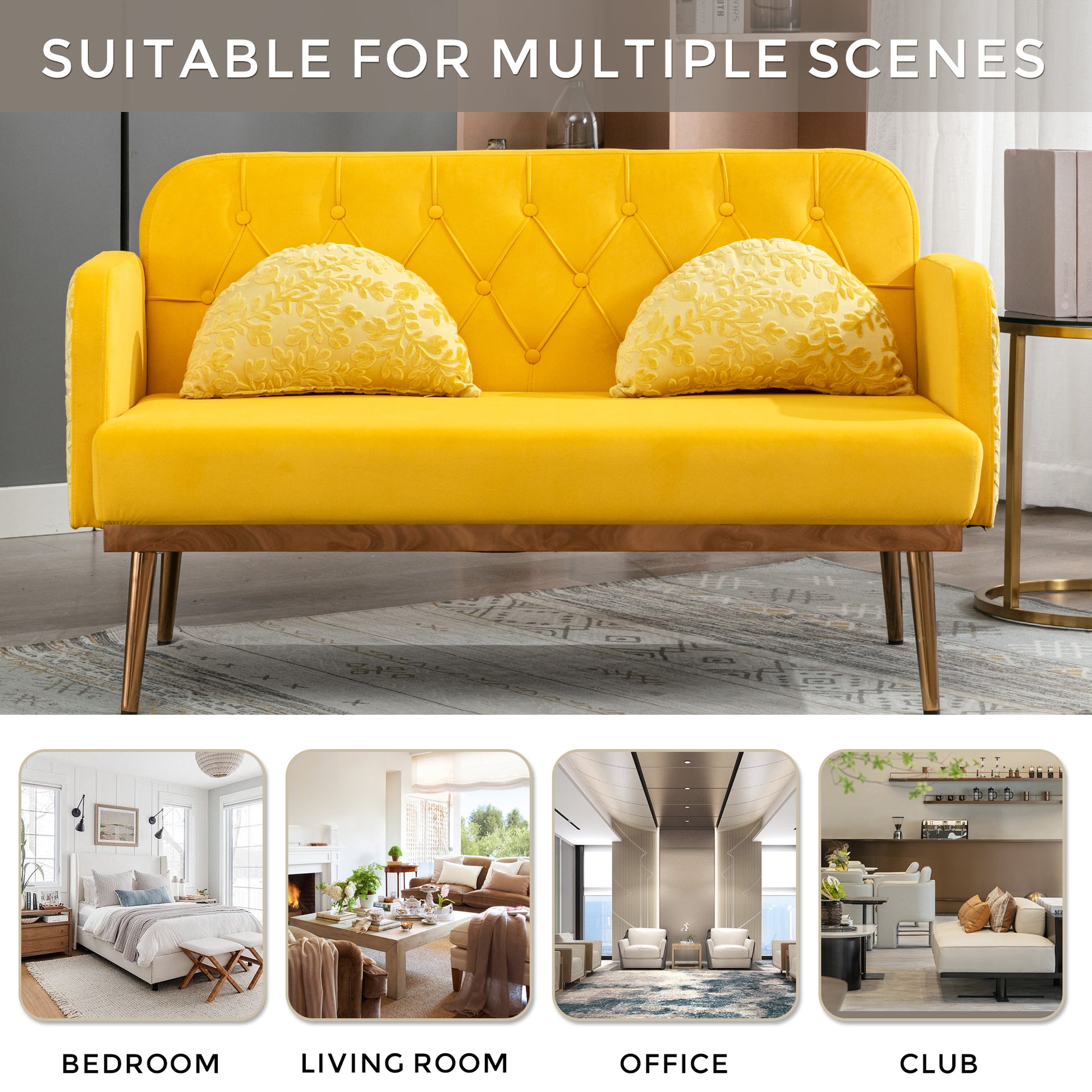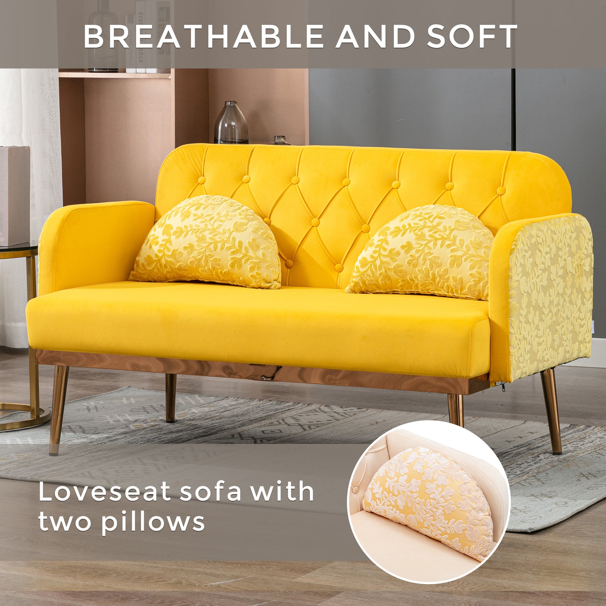 Coolmore Modern Velvet Loveseat Sofacomfy Upholstered 2 Seater Sofa With Gold Metal Legs, Small Loveseat Accent Couch For Living Bedroom Leisure Areas Yellow Velvet Yellow Foam Polyester 2 Seat