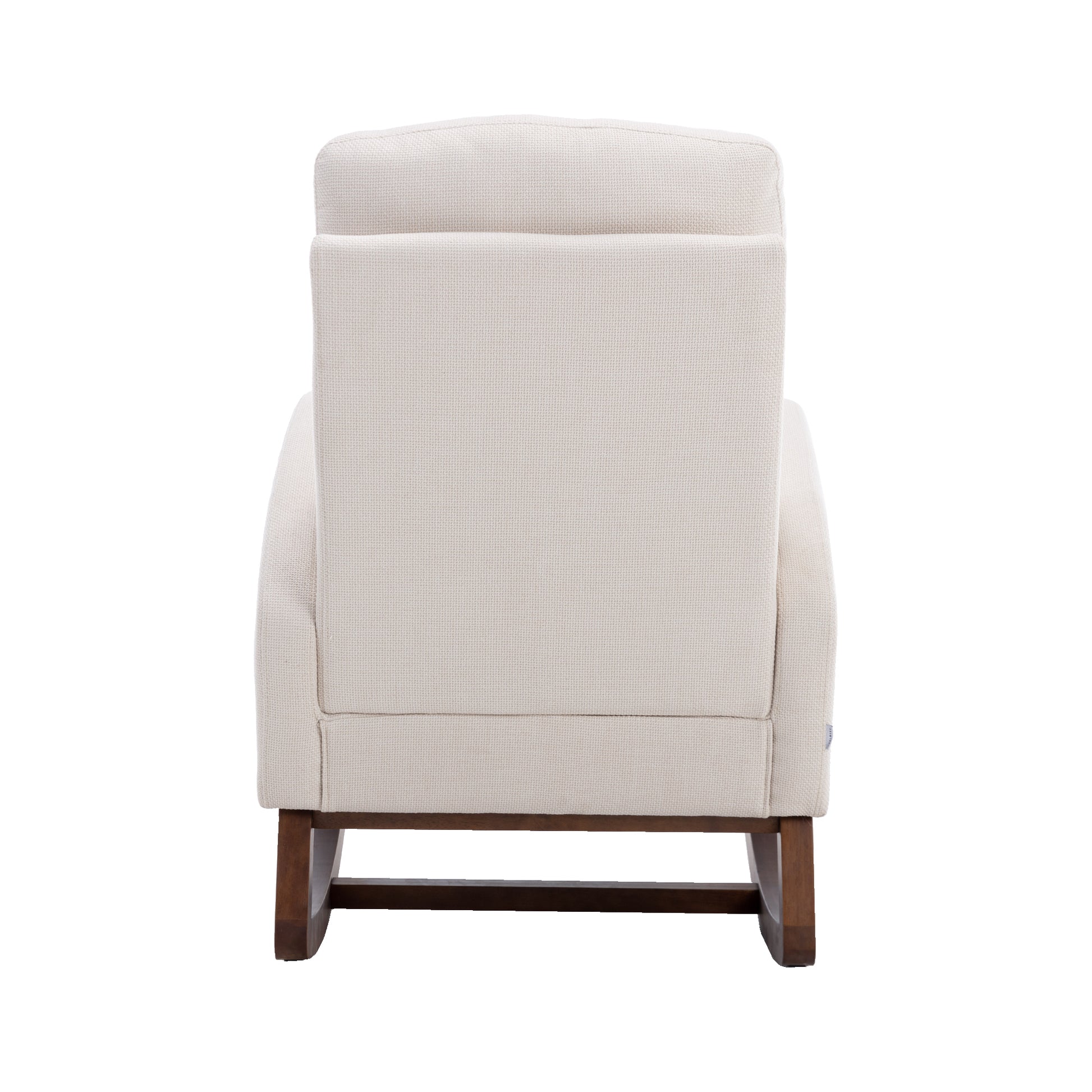 Coolmore Rocking Chair, Modern Glider Chair, Recliner Armchair With Wood Legs And Side Pocket, Nursery Rocking Accent Chair With High Back For Living Room Bedroom Beige Linen Beige Foam Solid Wood