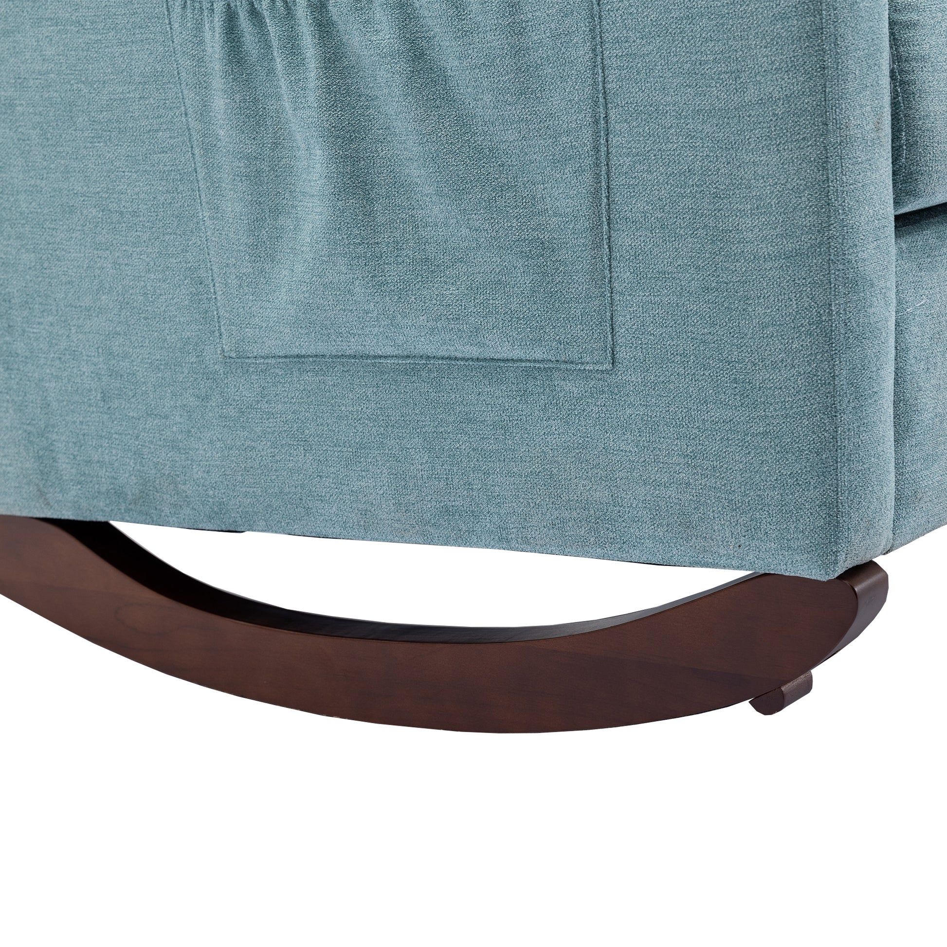 Coolmore Rocking Chair Upholstered Mid Century Modern Rocker Oversized Wingback Armchair For Living Room Light Blue Linen