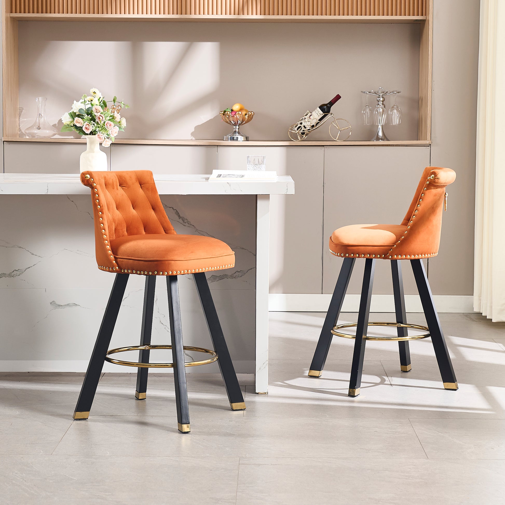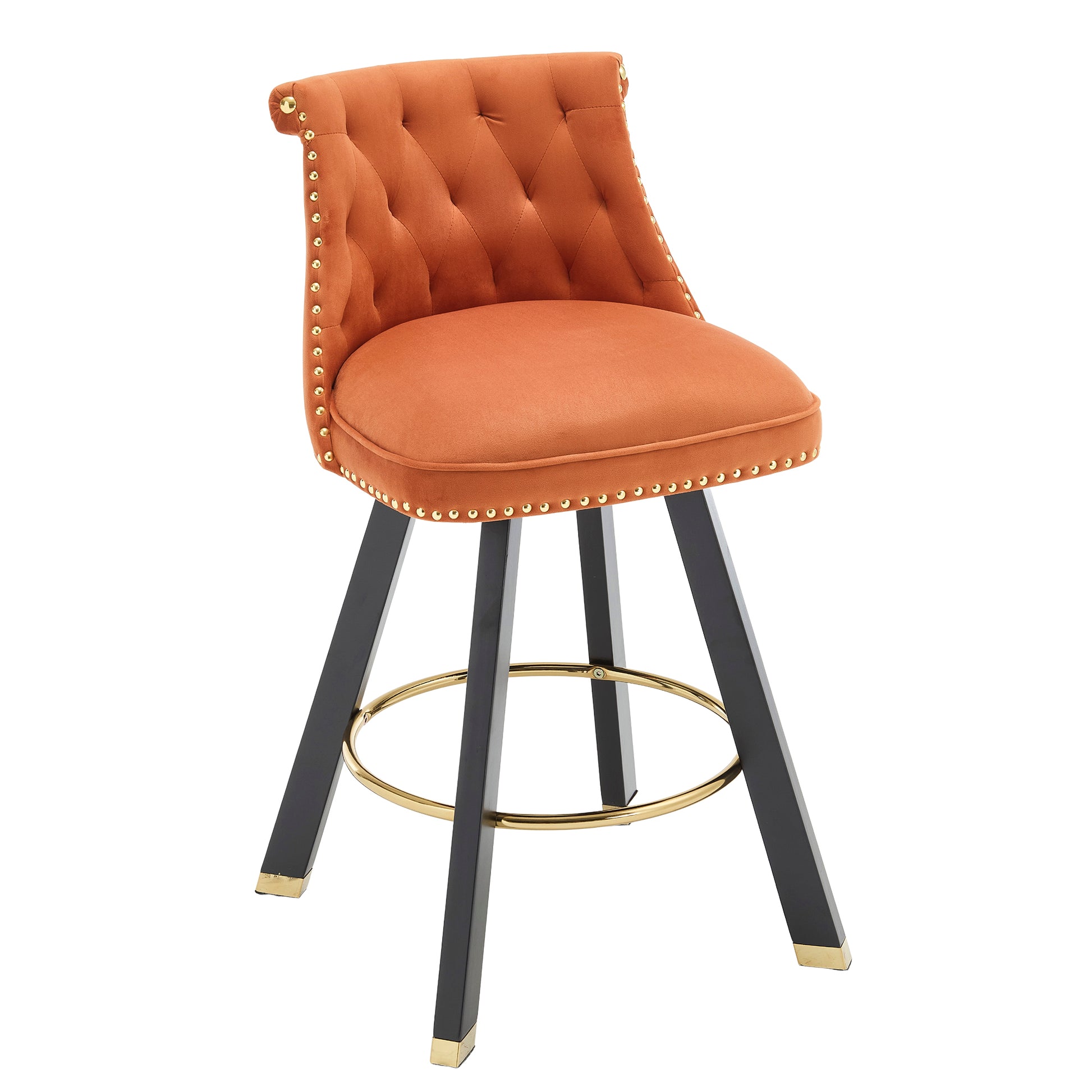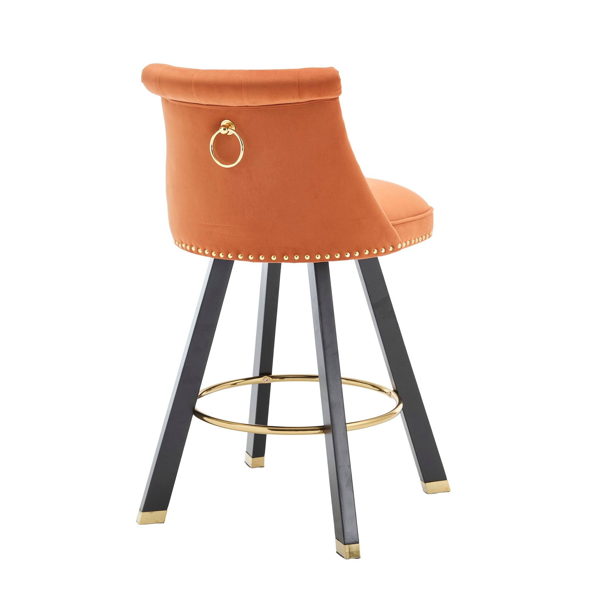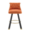 Coolmore Set Of 2,Back Pull Point Design, Velvet Material, 360 Degree Rotation, Back Pull Loop Detachable Design, Rivet Decoration, Square Foot Wooden Bar Chair Orange Velvet