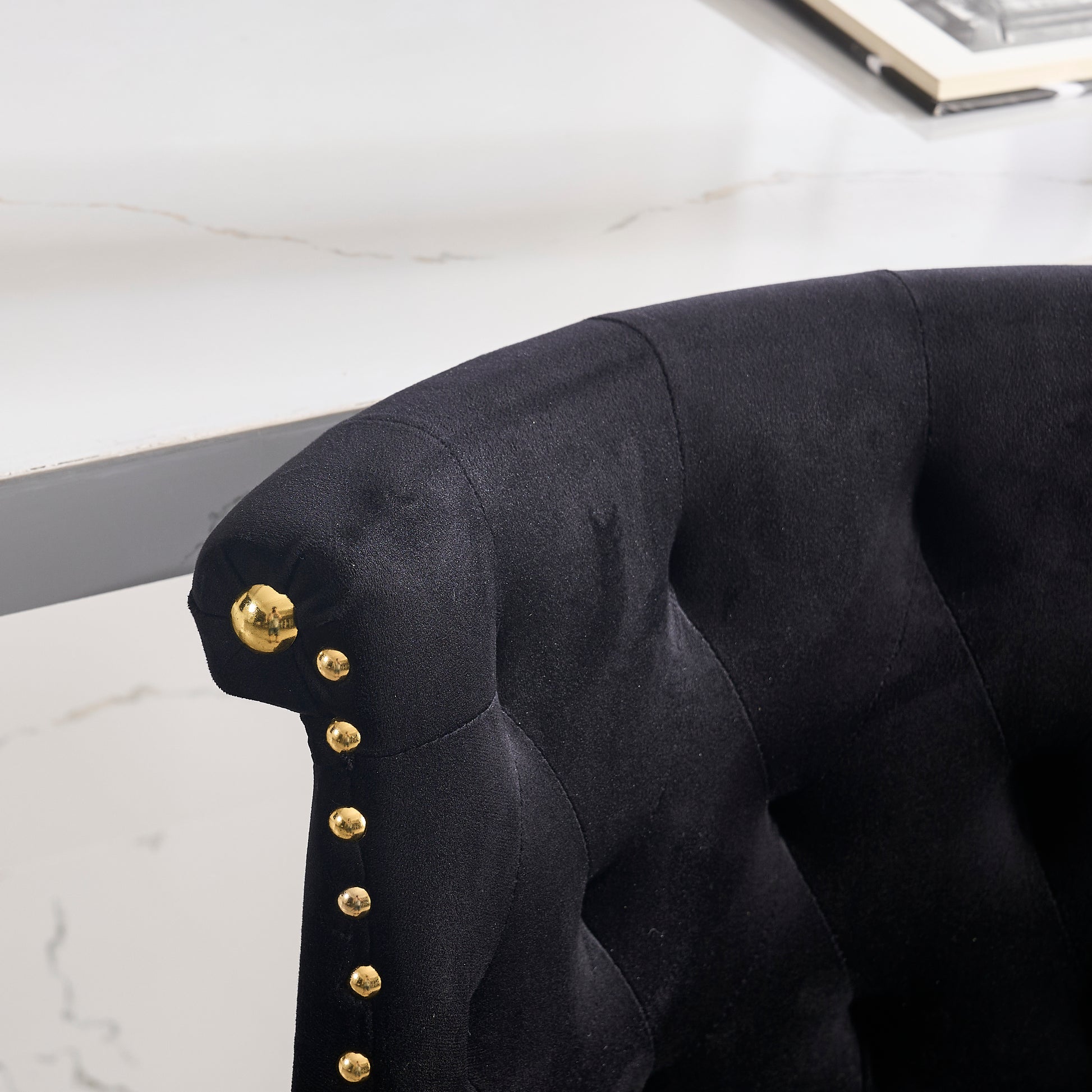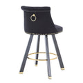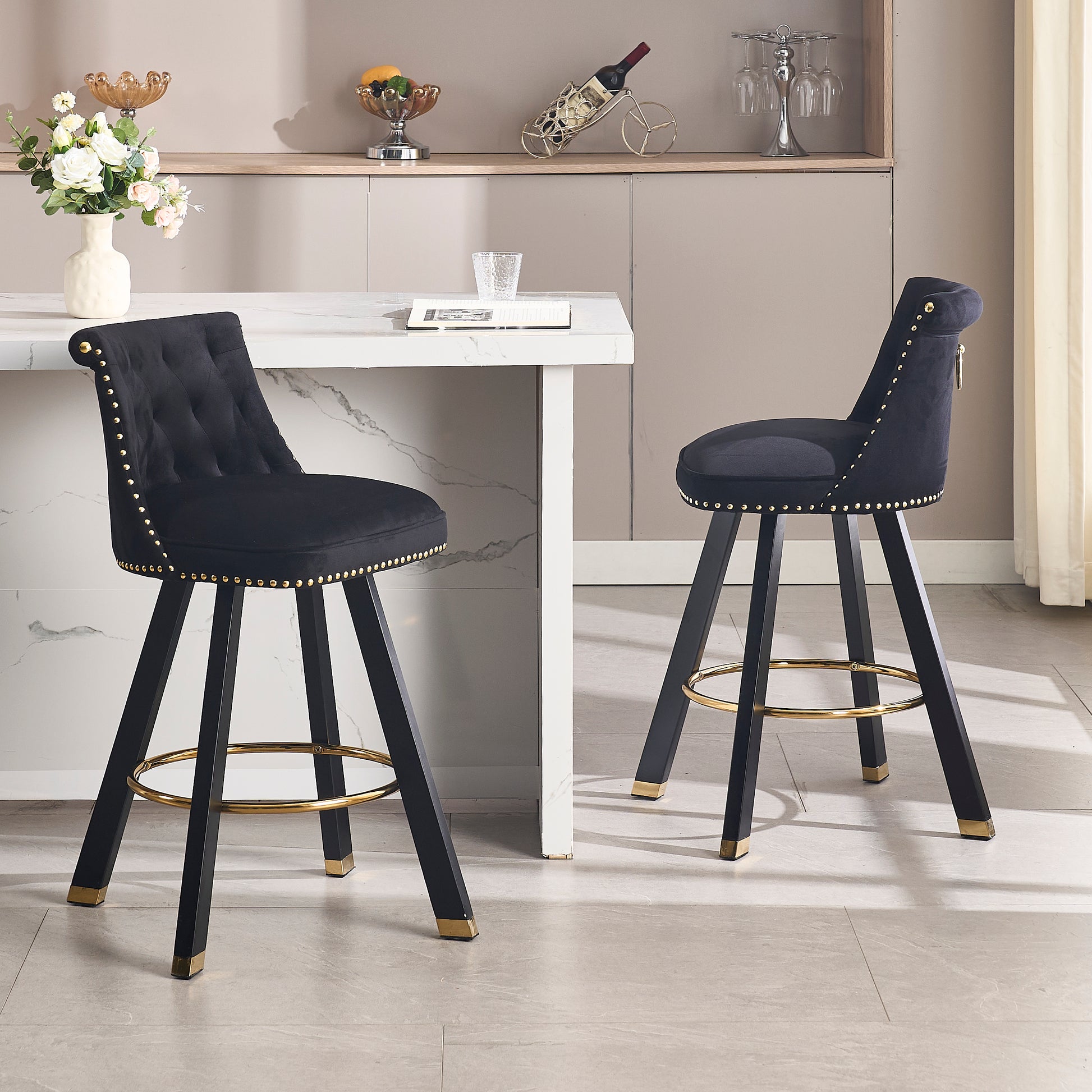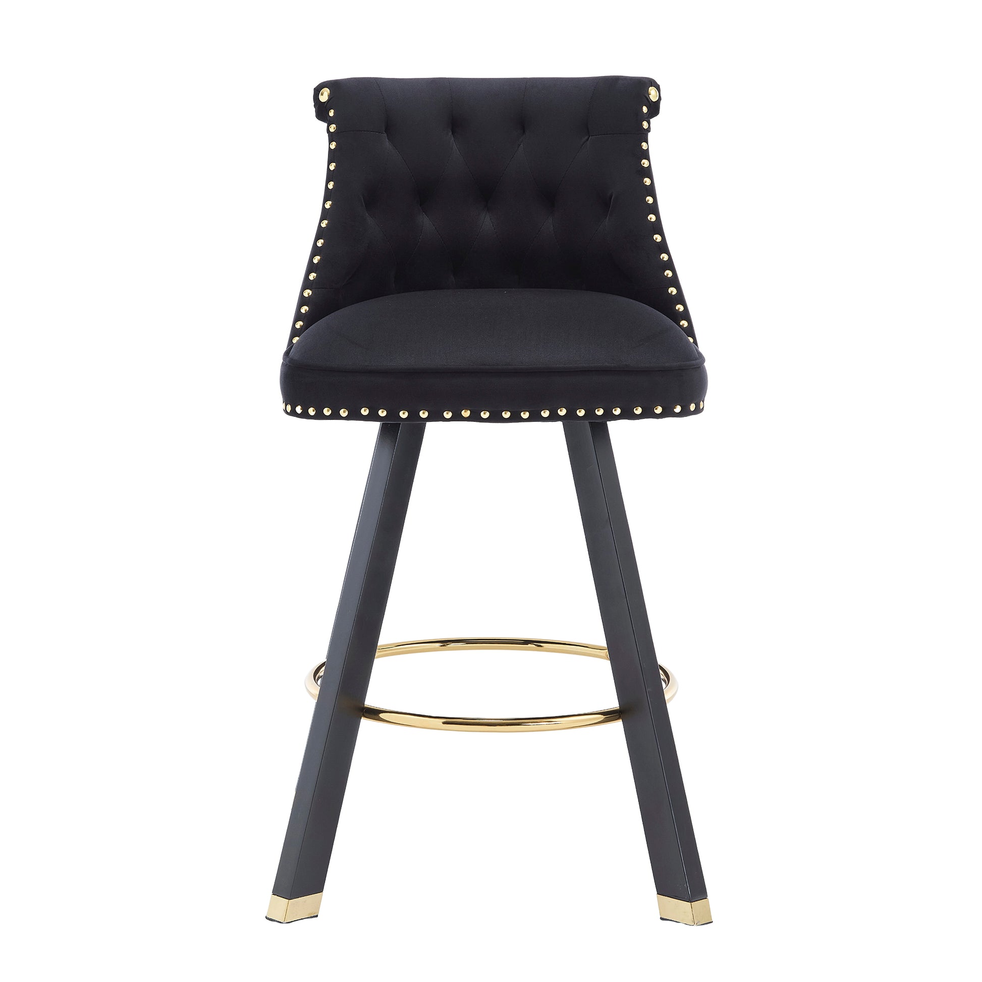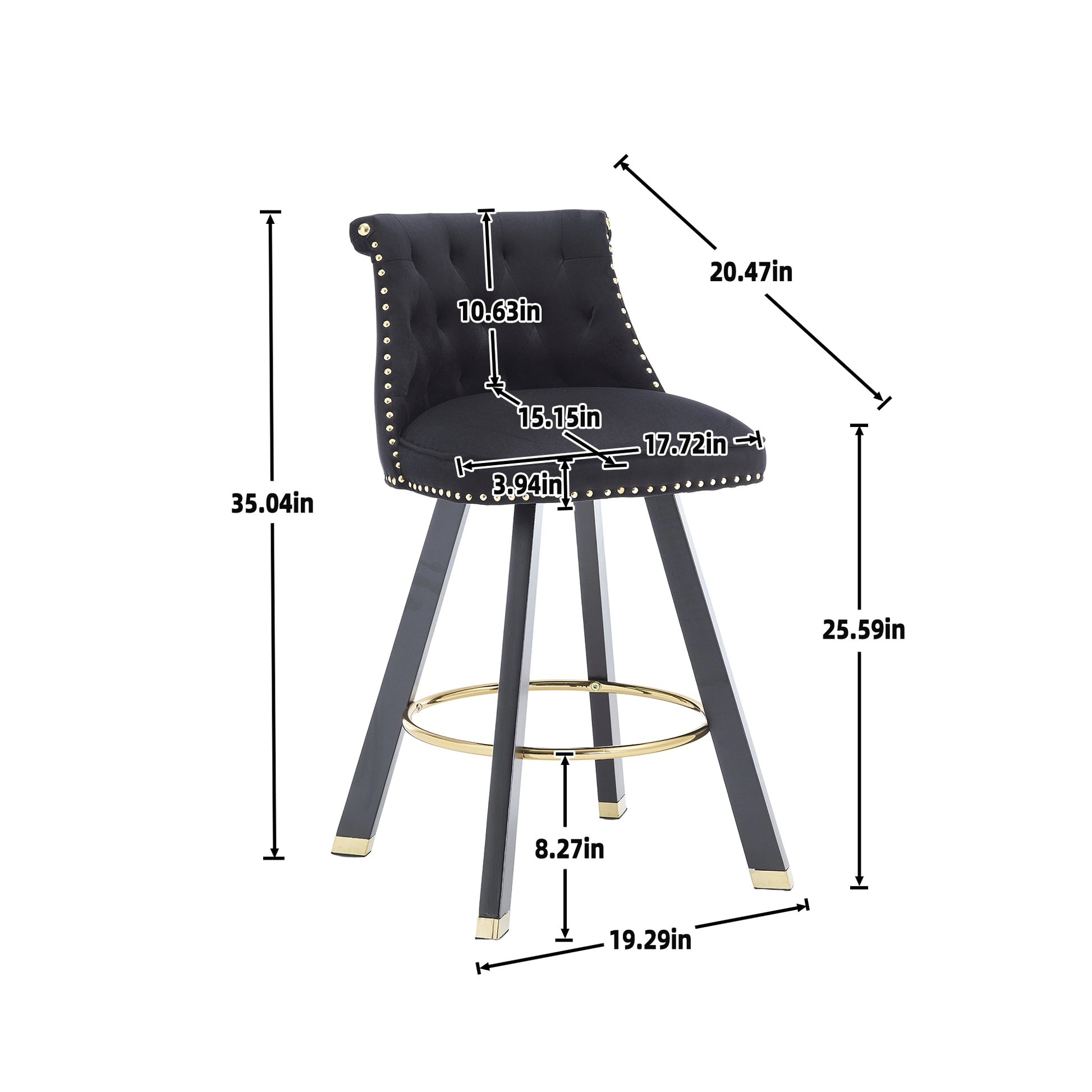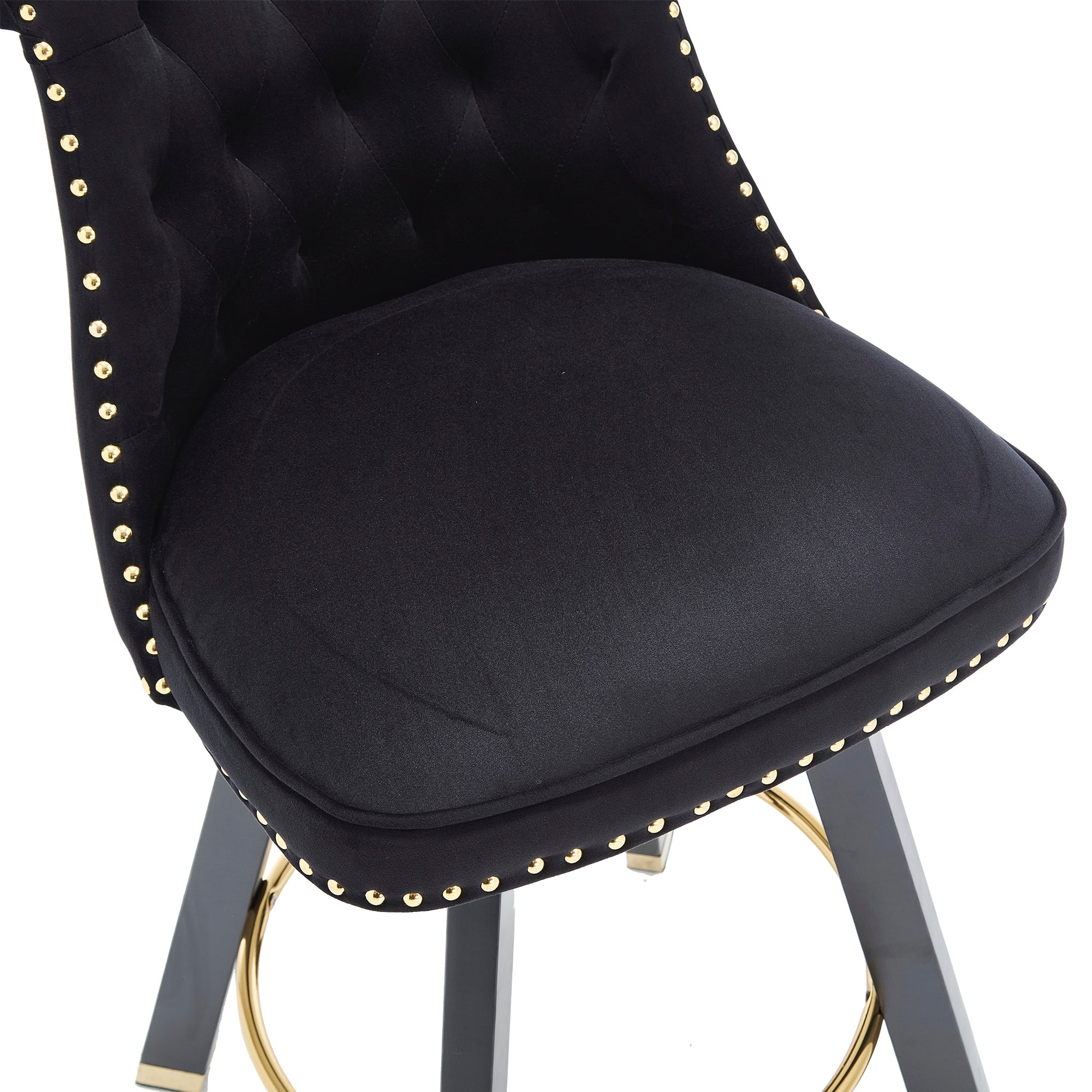 Coolmore Set Of 2,Back Pull Point Design, Velvet Material, 360 Degree Rotation, Back Pull Loop Detachable Design, Rivet Decoration, Square Foot Wooden Bar Chair Black Velvet
