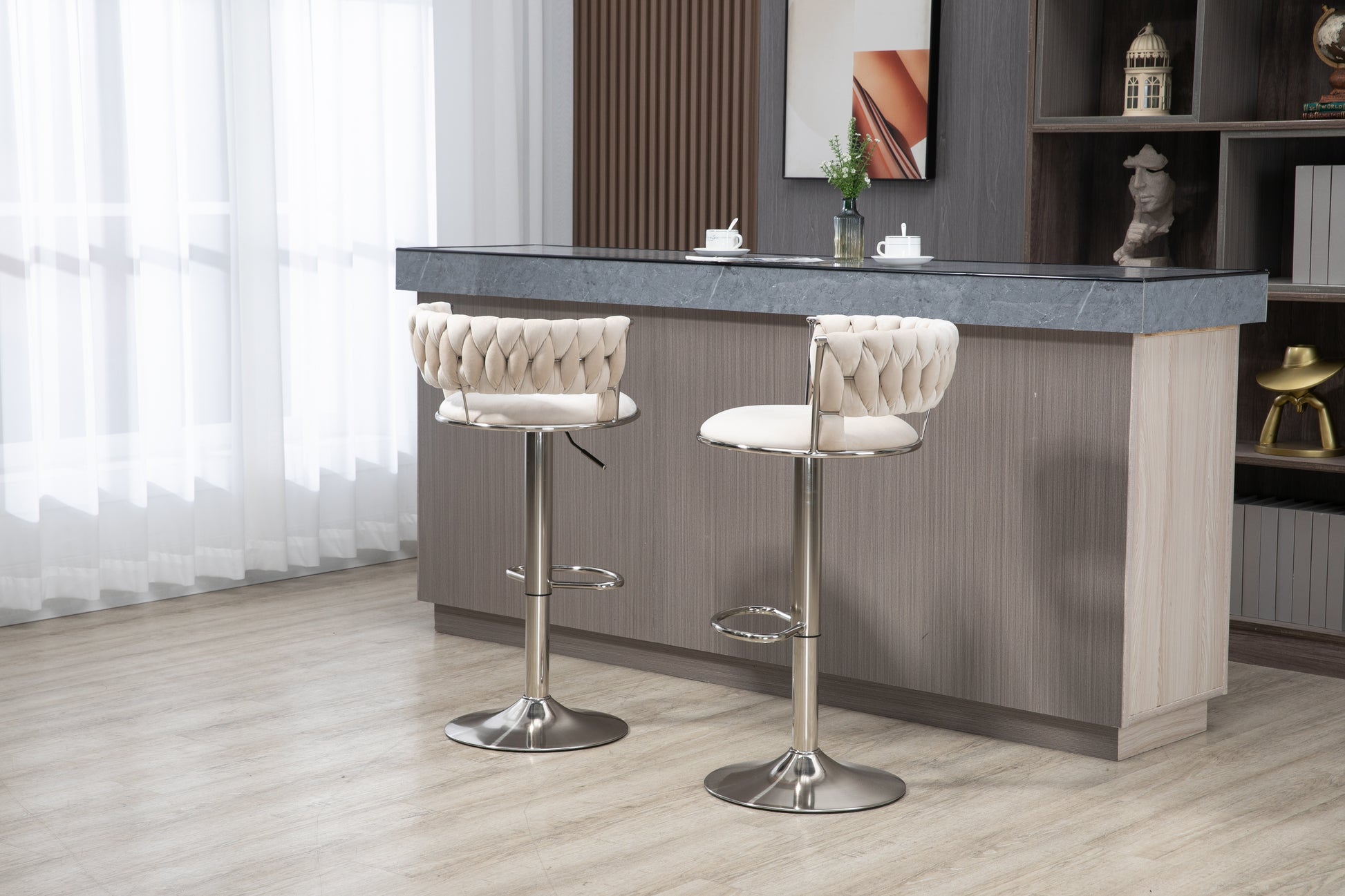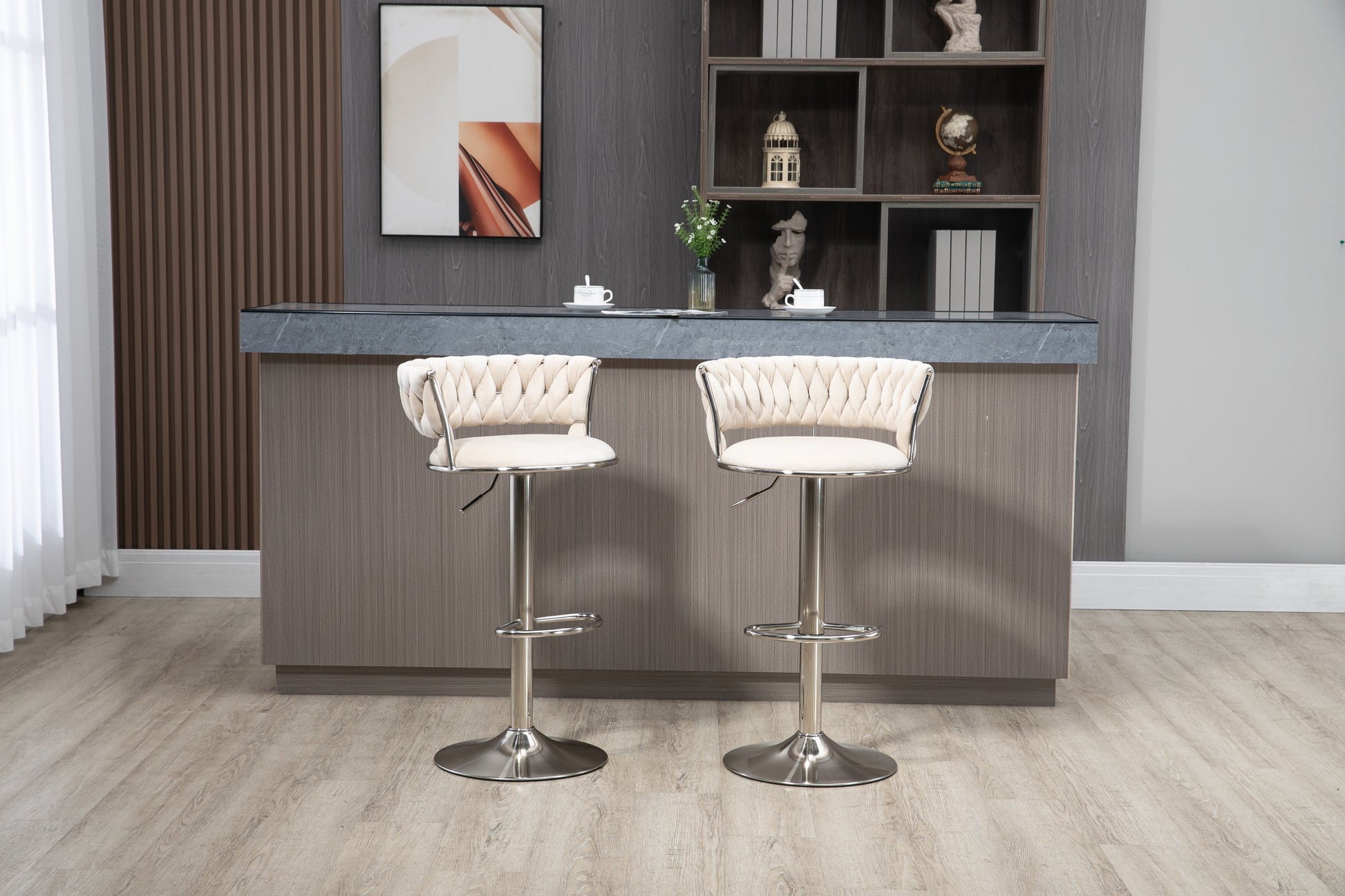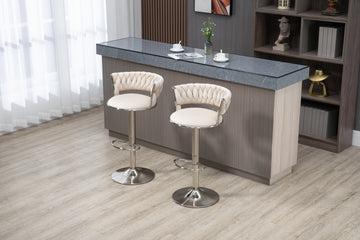 Coolmore Swivel Bar Stools Set Of 2 Adjustable Counter Height Chairs With Footrest For Kitchen, Dining Room 2Pc Set Ivory Polyester