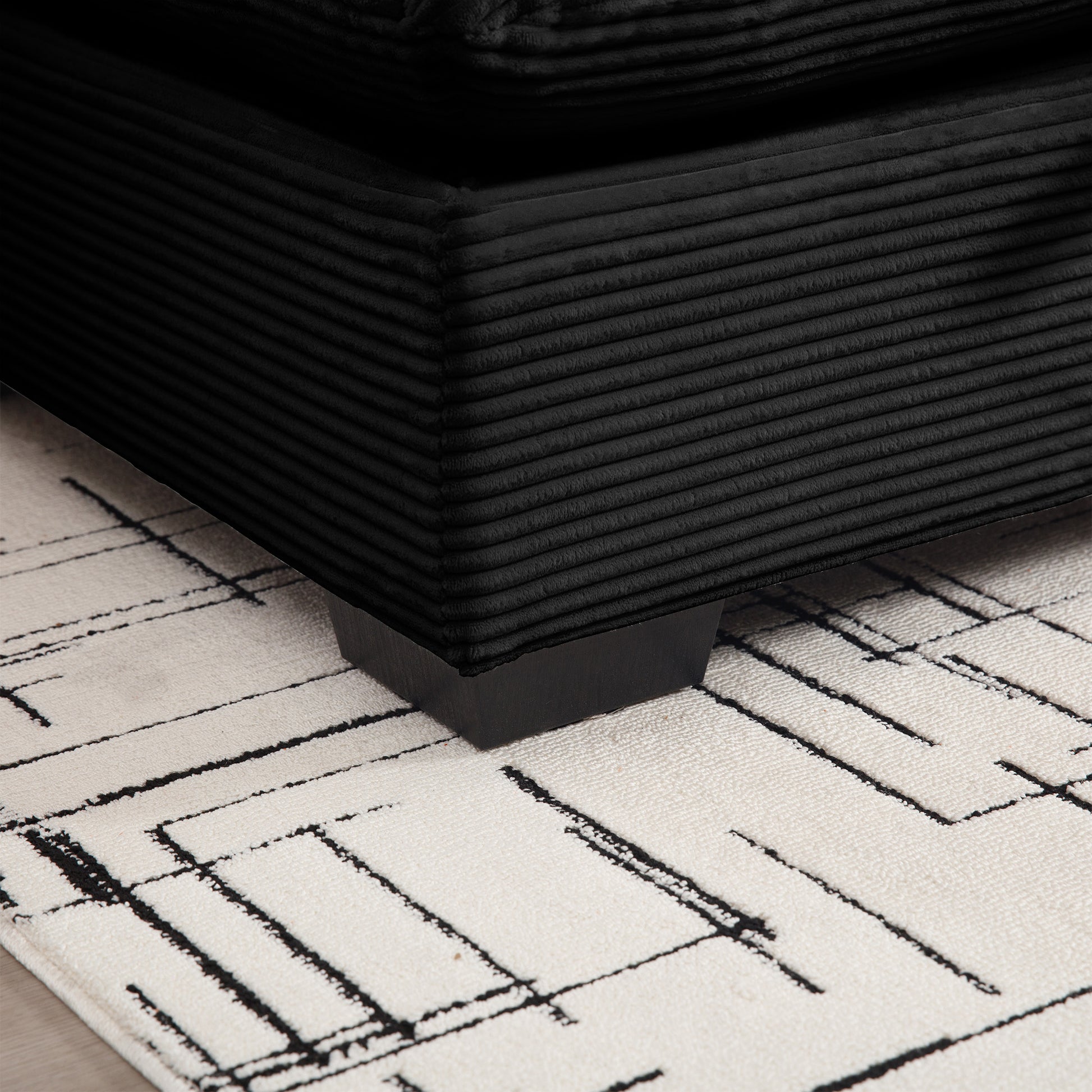 Corduroy Fabric Ottomans Footrest To Combine With 2 Seater Sofa, 3 Seater Sofa And 4 Seater Sofa, Black Corduroy Black Corduroy