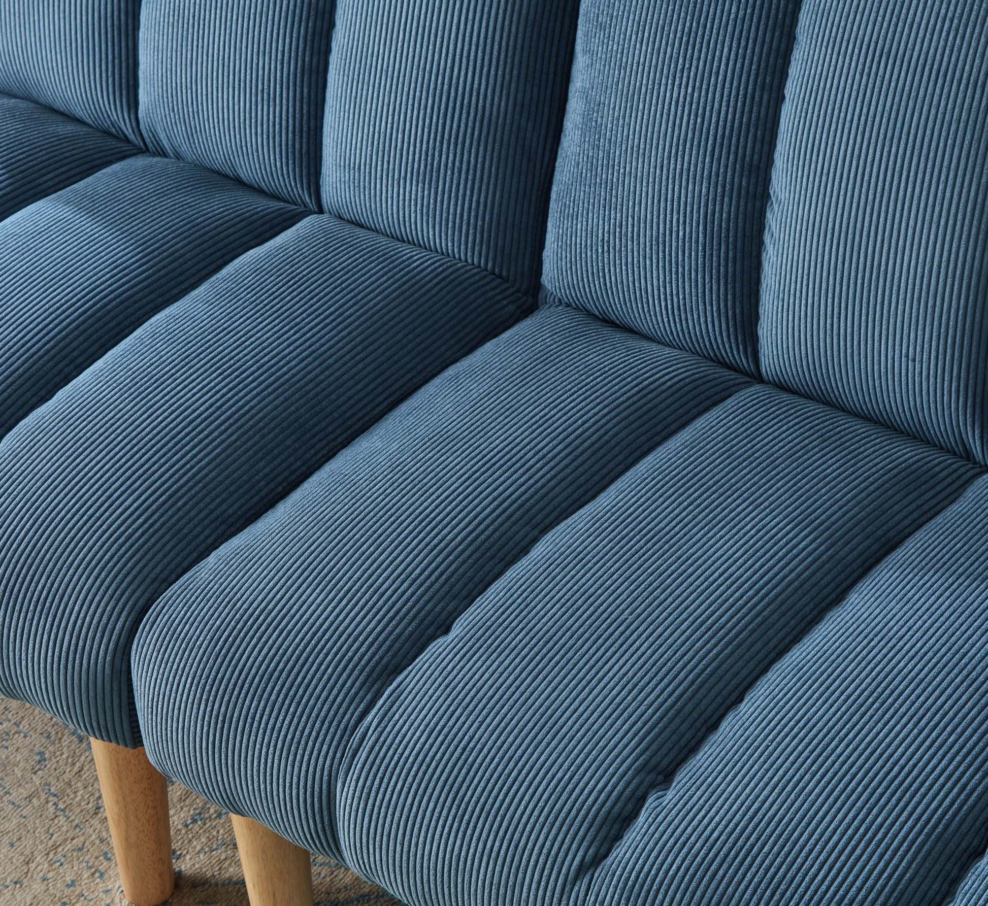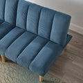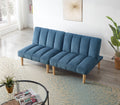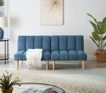 Corduroy Fabric, Wooden Legs Convertible Sofa Bed Color:Blue Blue Corduroy 3 Seat