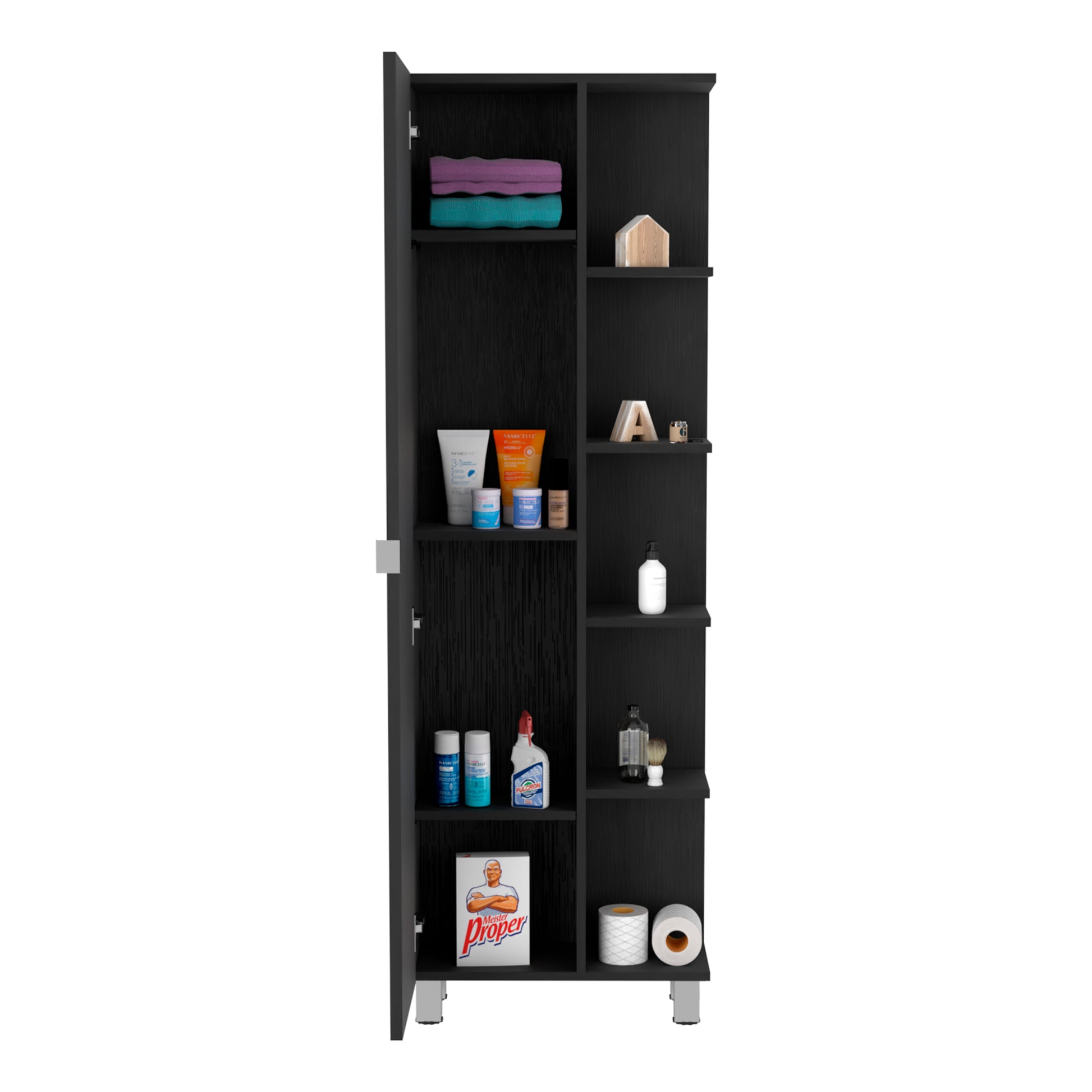 Corner Cabinet Womppi, Five Open Shelves, Single Door, Black Wengue Finish Black Particle Board