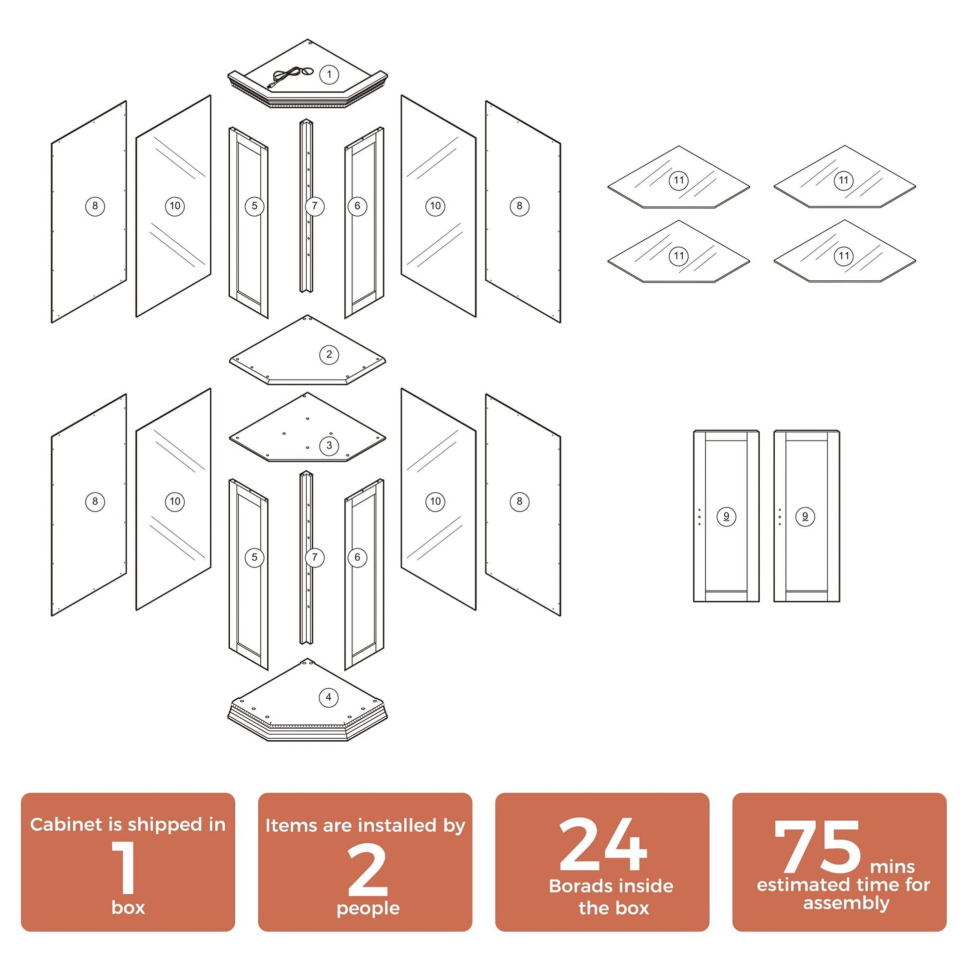 Corner Curio Cabinet With Lights, Adjustable Tempered Glass Shelves, Mirrored Back, Display Cabinet,Light Walnut E26 Light Bulb Not Included Walnut Mdf
