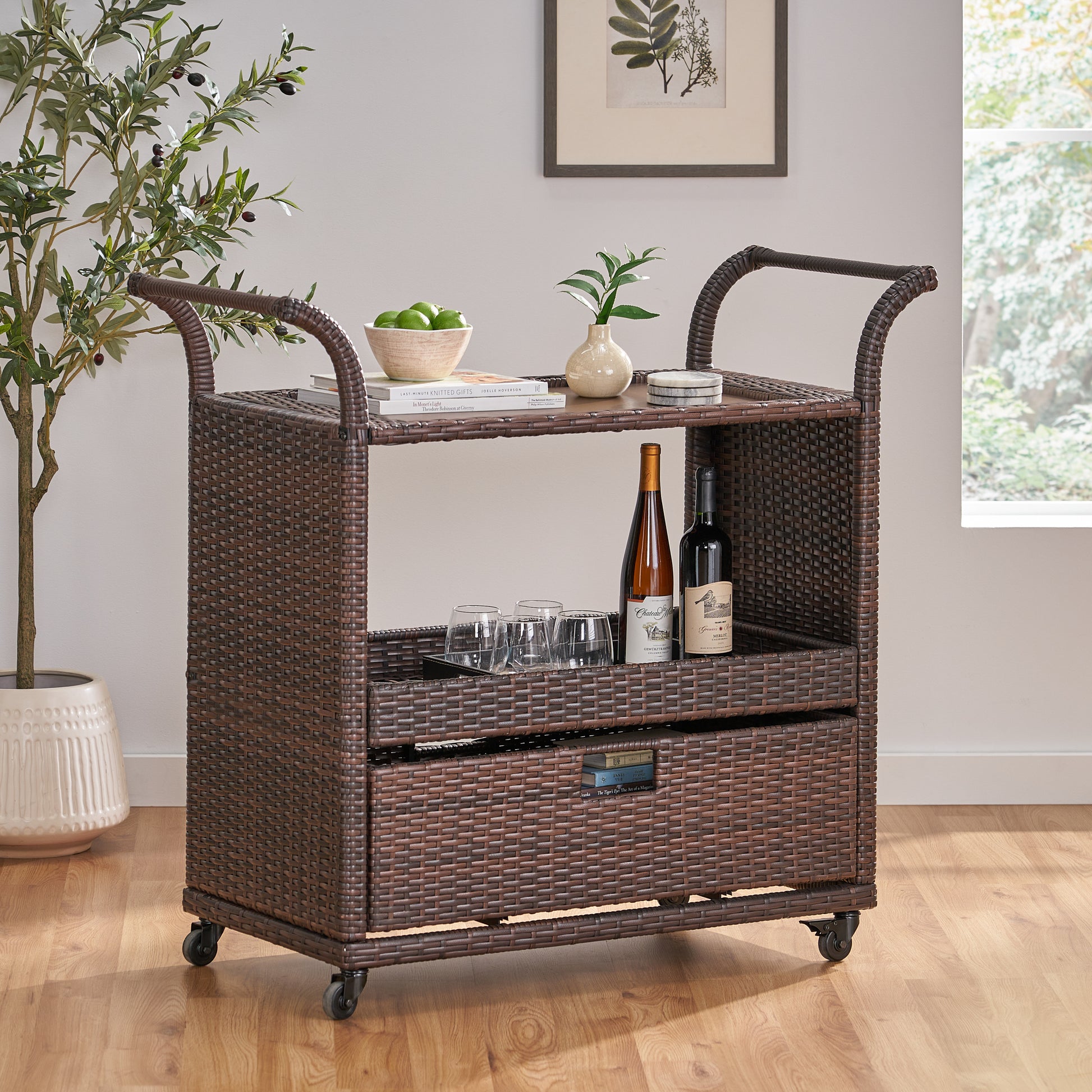 Corona Bar Cart Brown Pe Rattan Iron