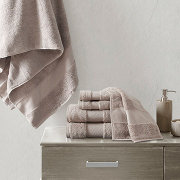 Cotton 6 Piece Bath Towel Set Taupe Cotton