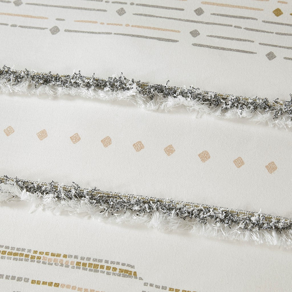 Cotton Printed Comforter Set With Trims Off White Gray Full Queen Queen Off White Gray Cotton