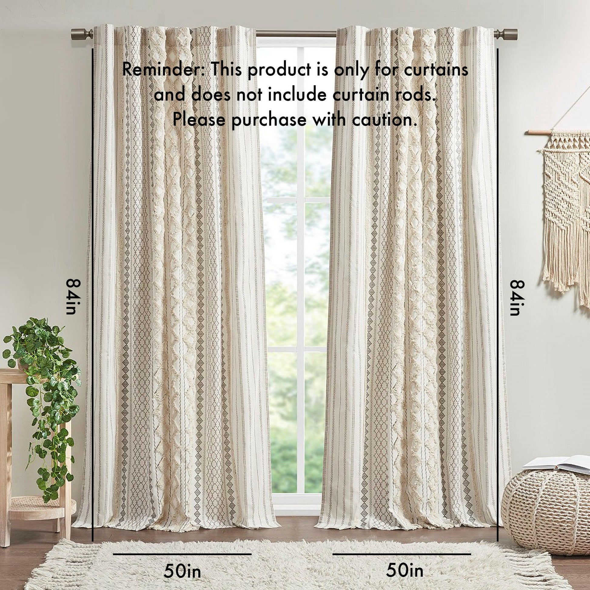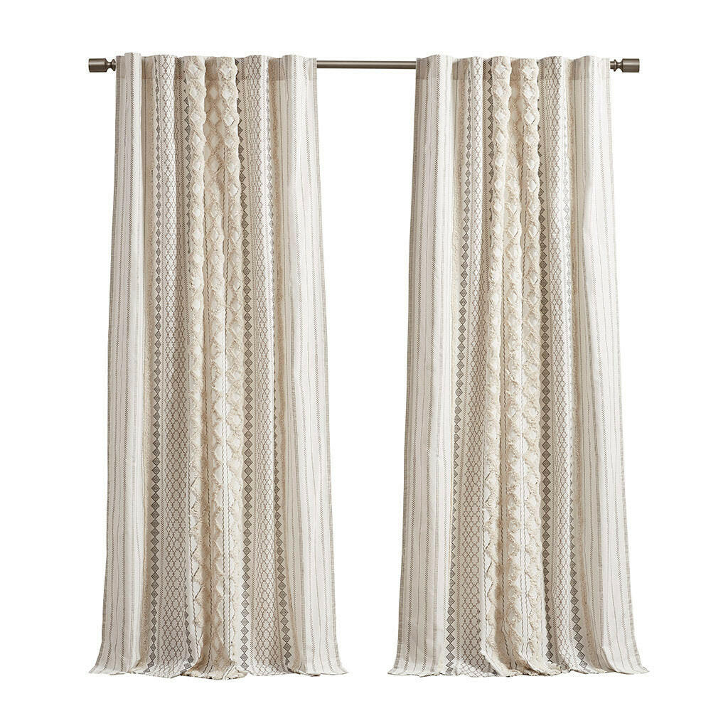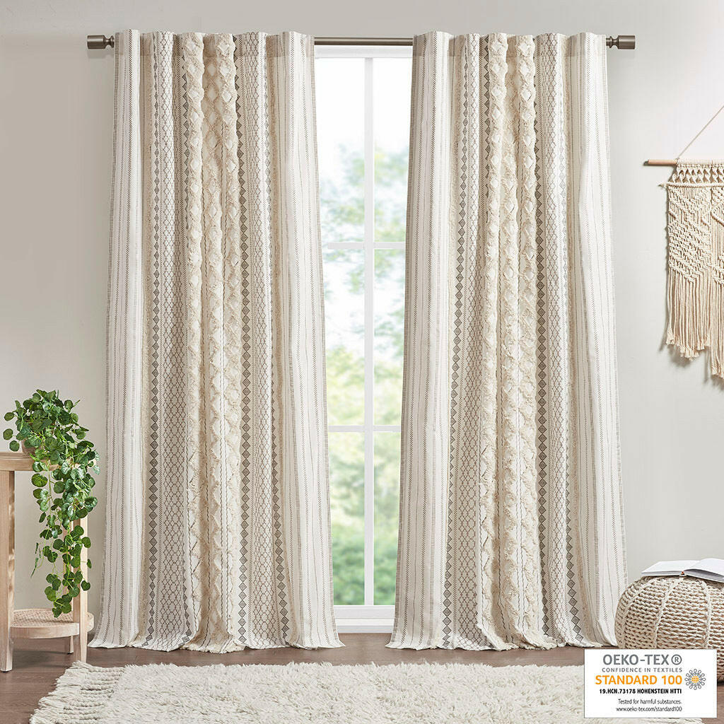 Cotton Printed Curtain Panel With Chenille Stripe And Lining Only 1 Pc Panel Multicolor Cotton