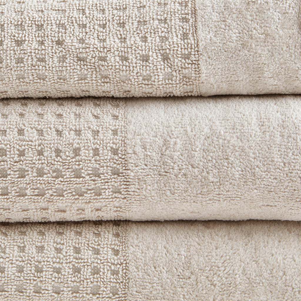 Cotton Waffle Jacquard Antimicrobial Bath Towel 6 Piece Set Taupe Cotton