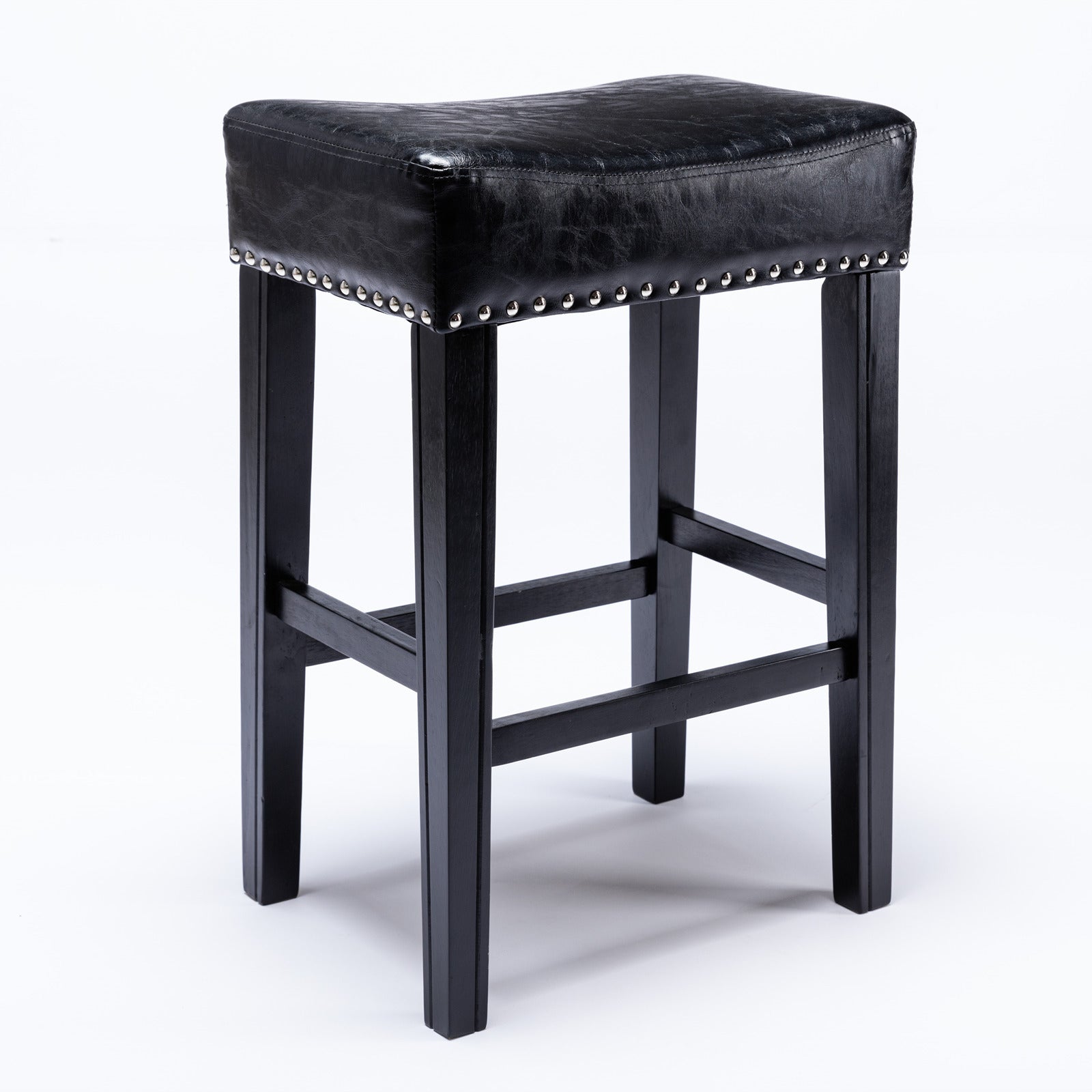 Counter Height 26" Bar Stools For Kitchen Counter Backless Faux Leather Stools Farmhouse Island Chairs 26 Inch, Black, Set Of 2 Black Foam Pu
