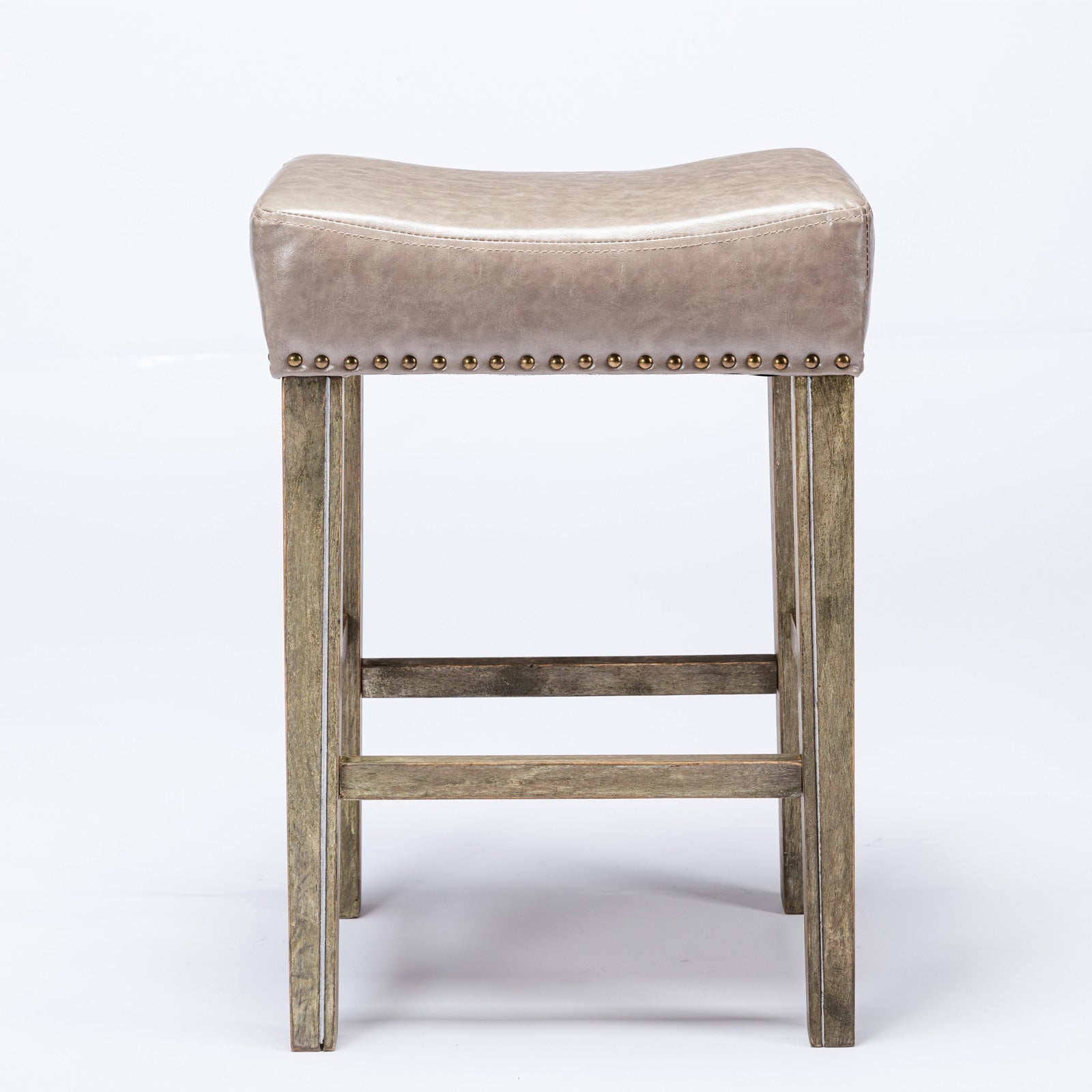 Counter Height 26" Bar Stools For Kitchen Counter Backless Faux Leather Stools Farmhouse Island Chairs 26 Inch, Gray, Set Of 2 Gray Foam Pu