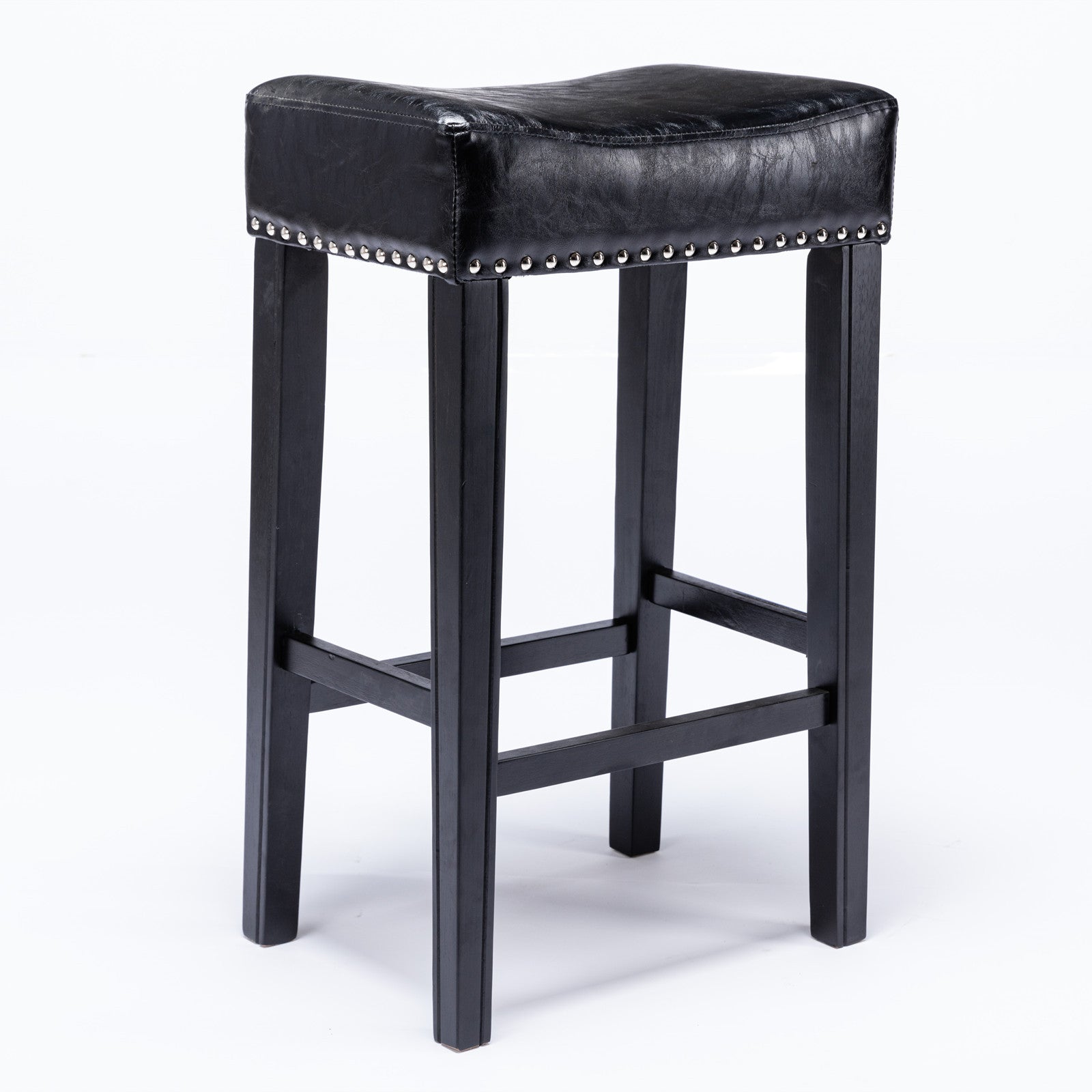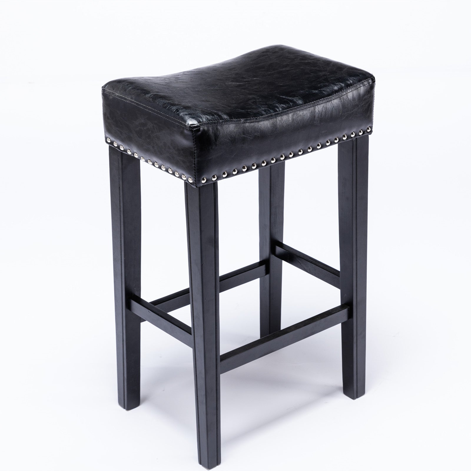 Counter Height 29" Bar Stools For Kitchen Counter Backless Faux Leather Stools Farmhouse Island Chairs 29 Inch, Black, Set Of 2 Black Foam Pu