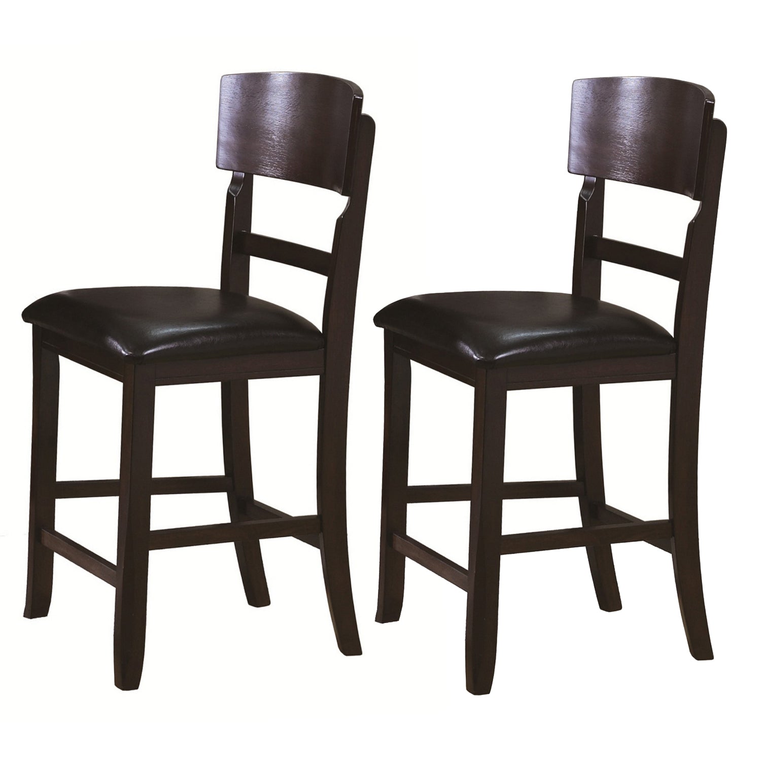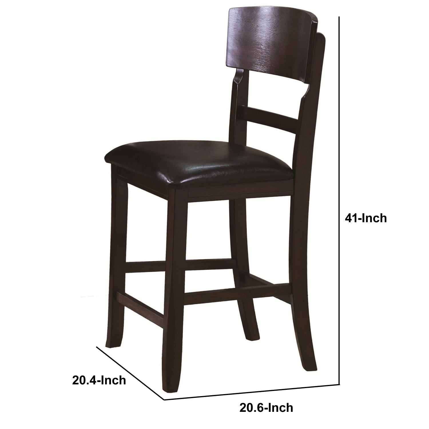 Counter Height Chair Withseating, Set Of 2, Brown Brown Wood Fabric