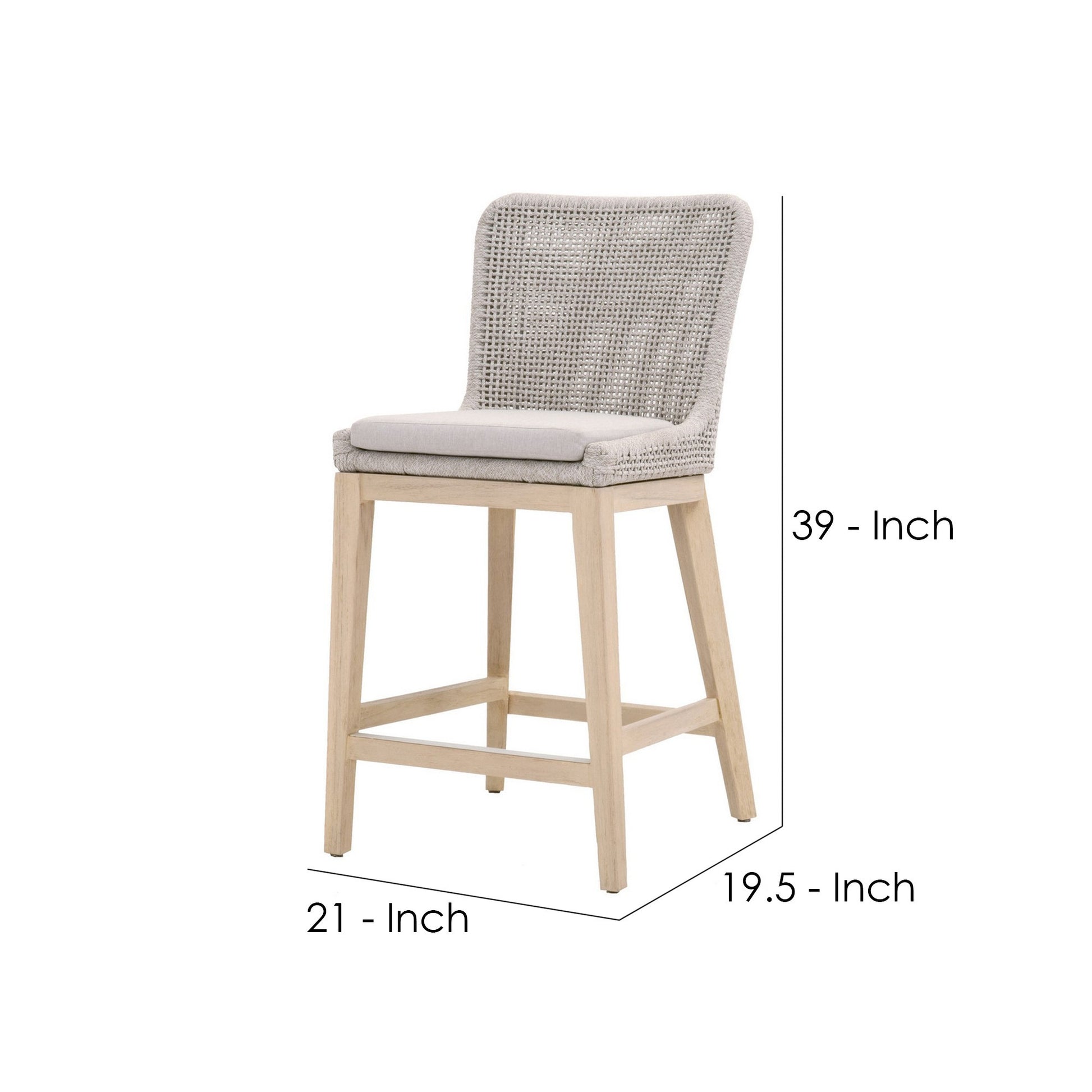 Counter Stool With Mesh Design Rope Backrest, Brown And Gray Grey Brown Wood Rope
