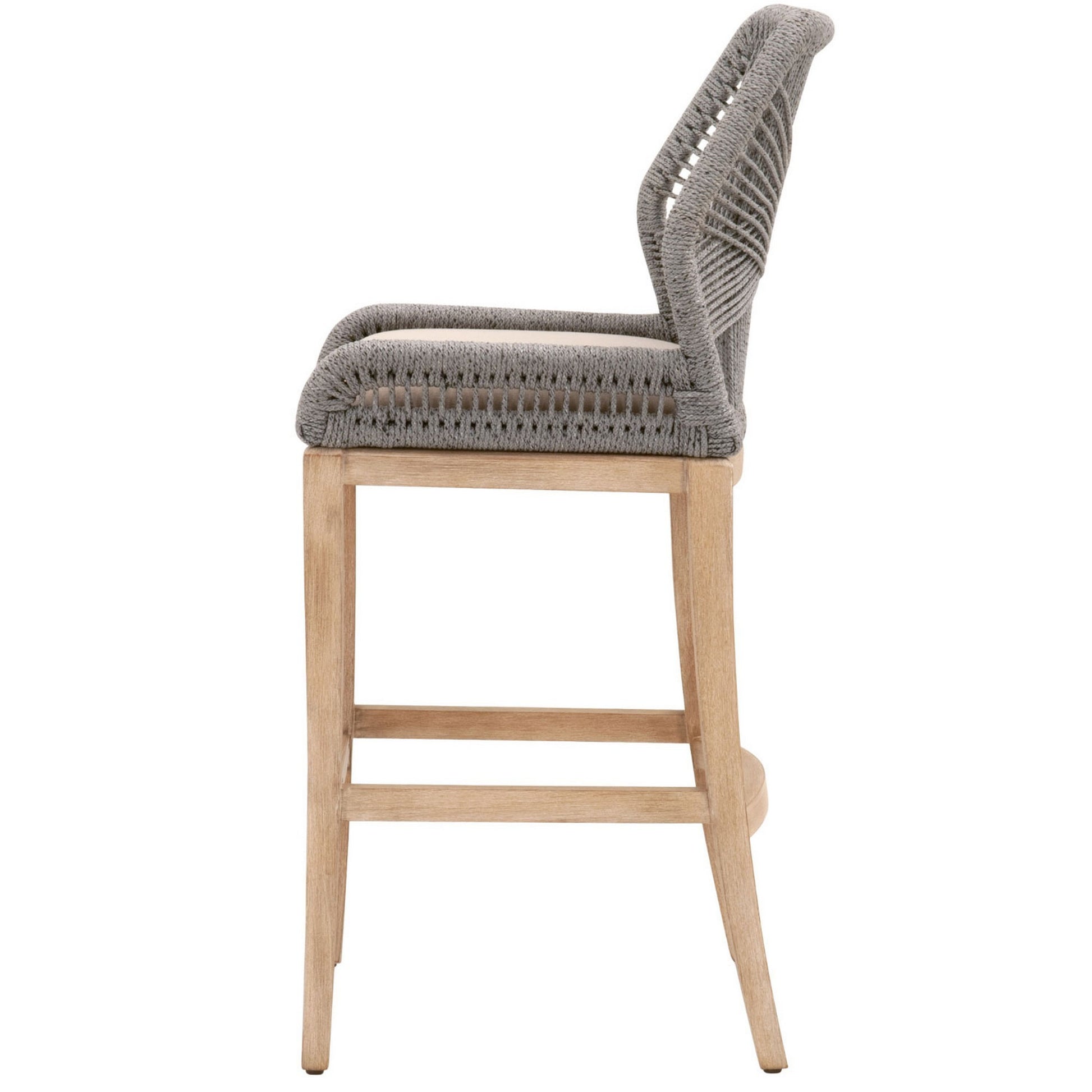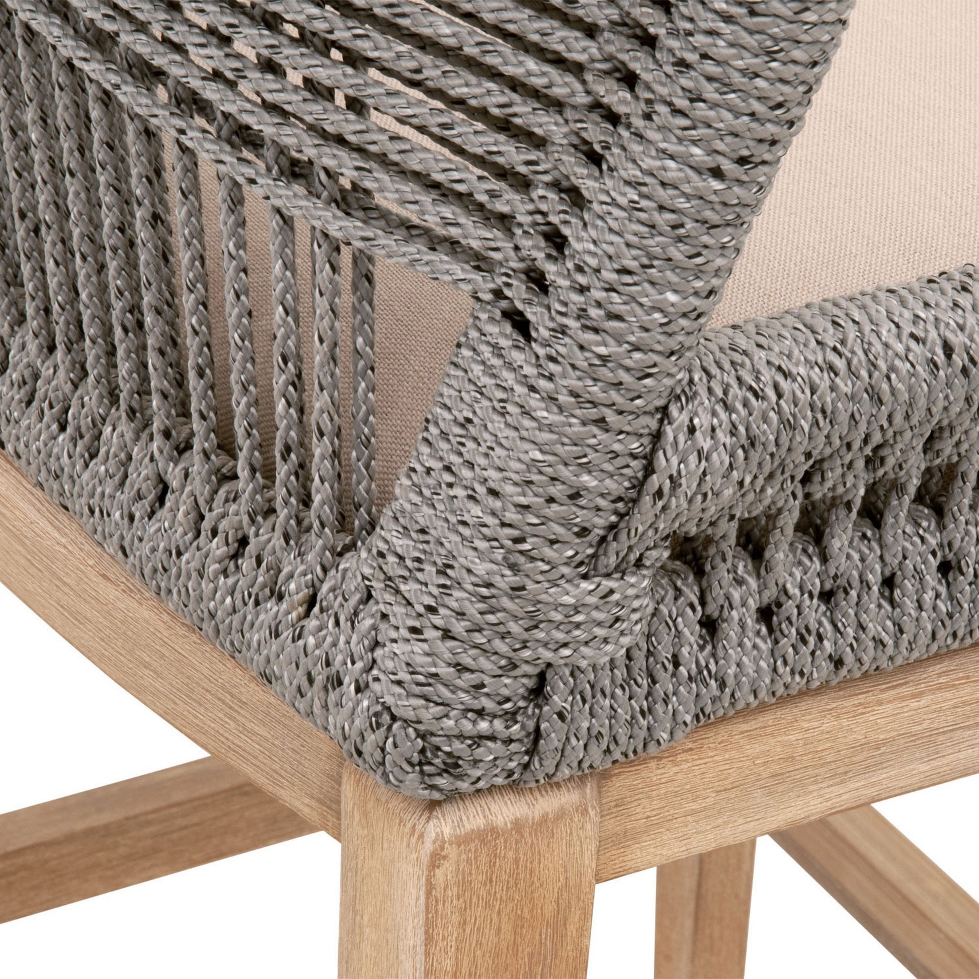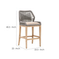 Counter Stool With Wooden Legs And Rope Back, Gray And Brown Grey Brown Wood Rope