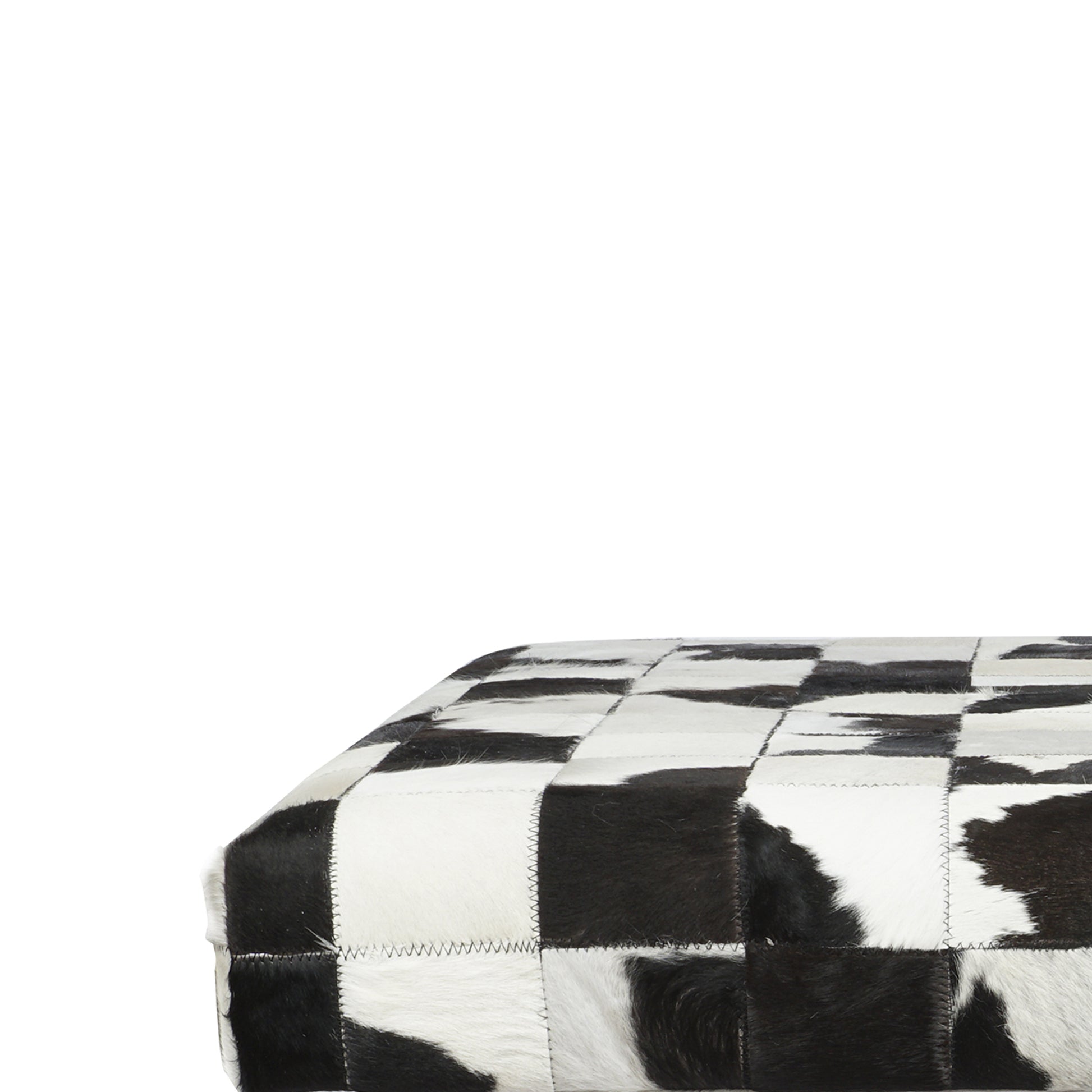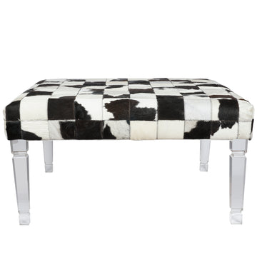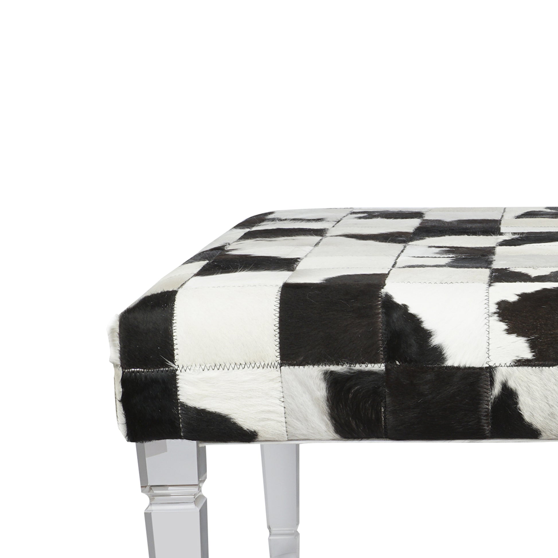 Cow Hide Upholstered Bench With Acrylic Legs, White And Black Black White Wood Fabric