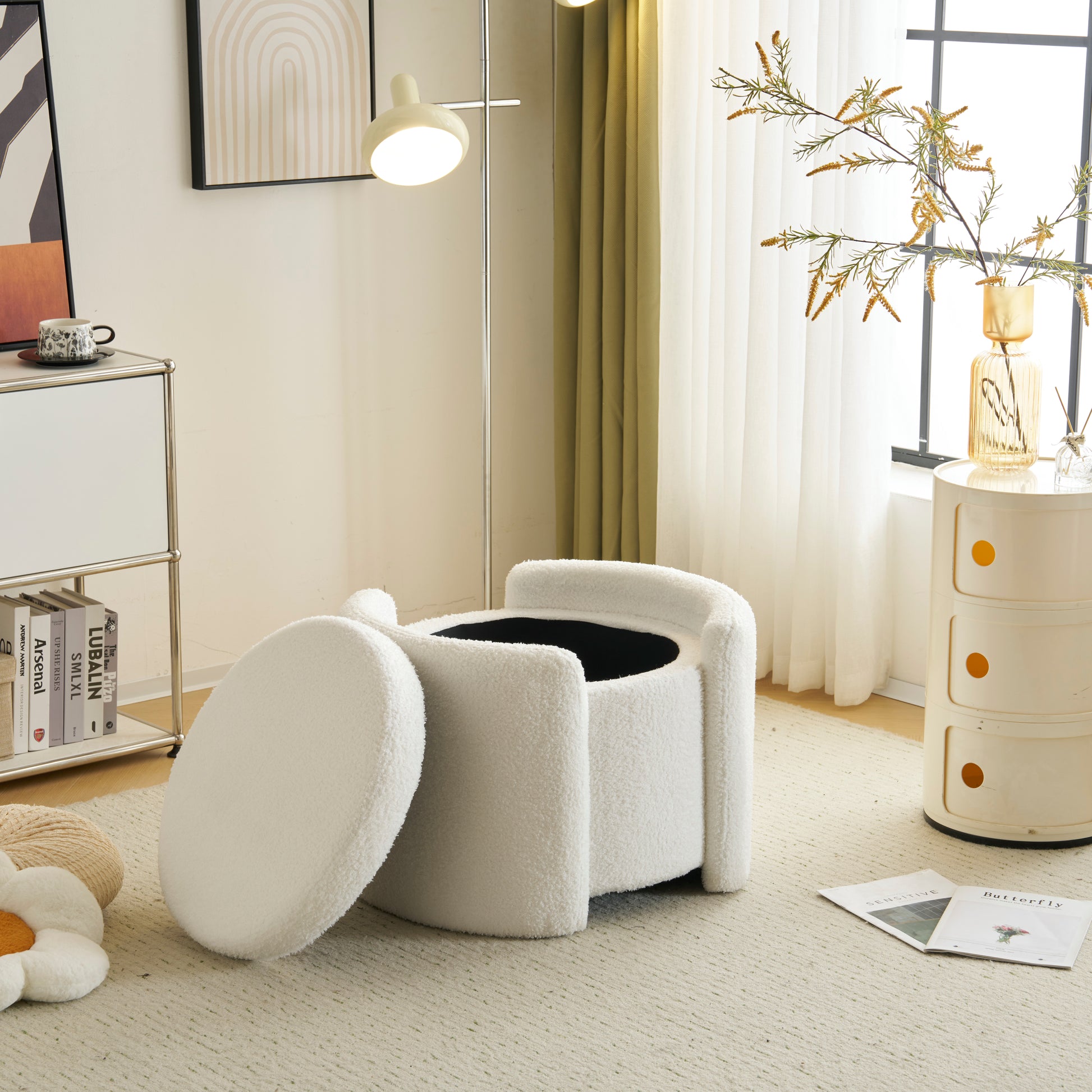 Cozy Lamb Fleece Storage Ottoman: Stylish Comfort With Hidden Storage, White Wood Primary Living Space Solid White With Storage White Polyester Polyester Backless Casual Round Internal Storage