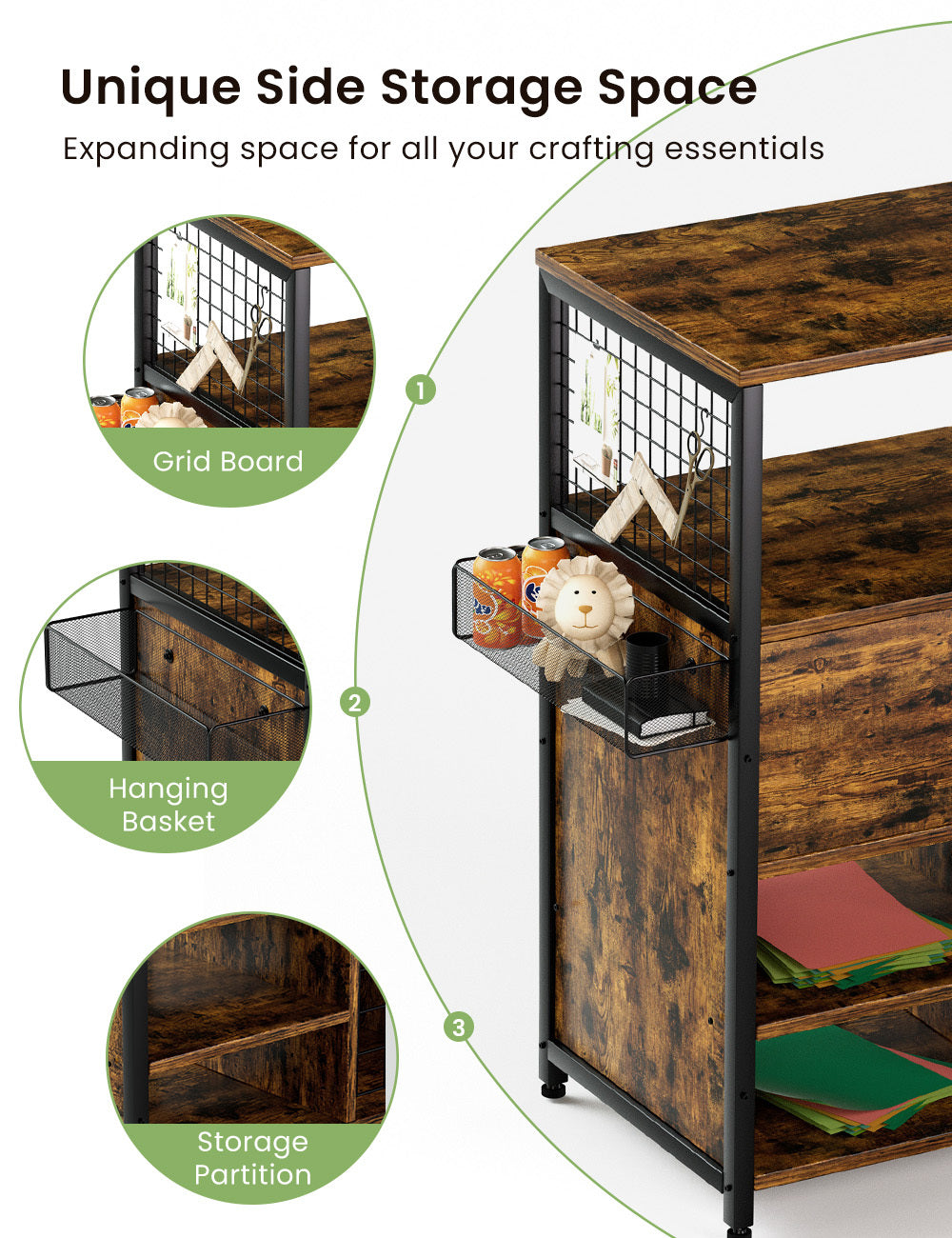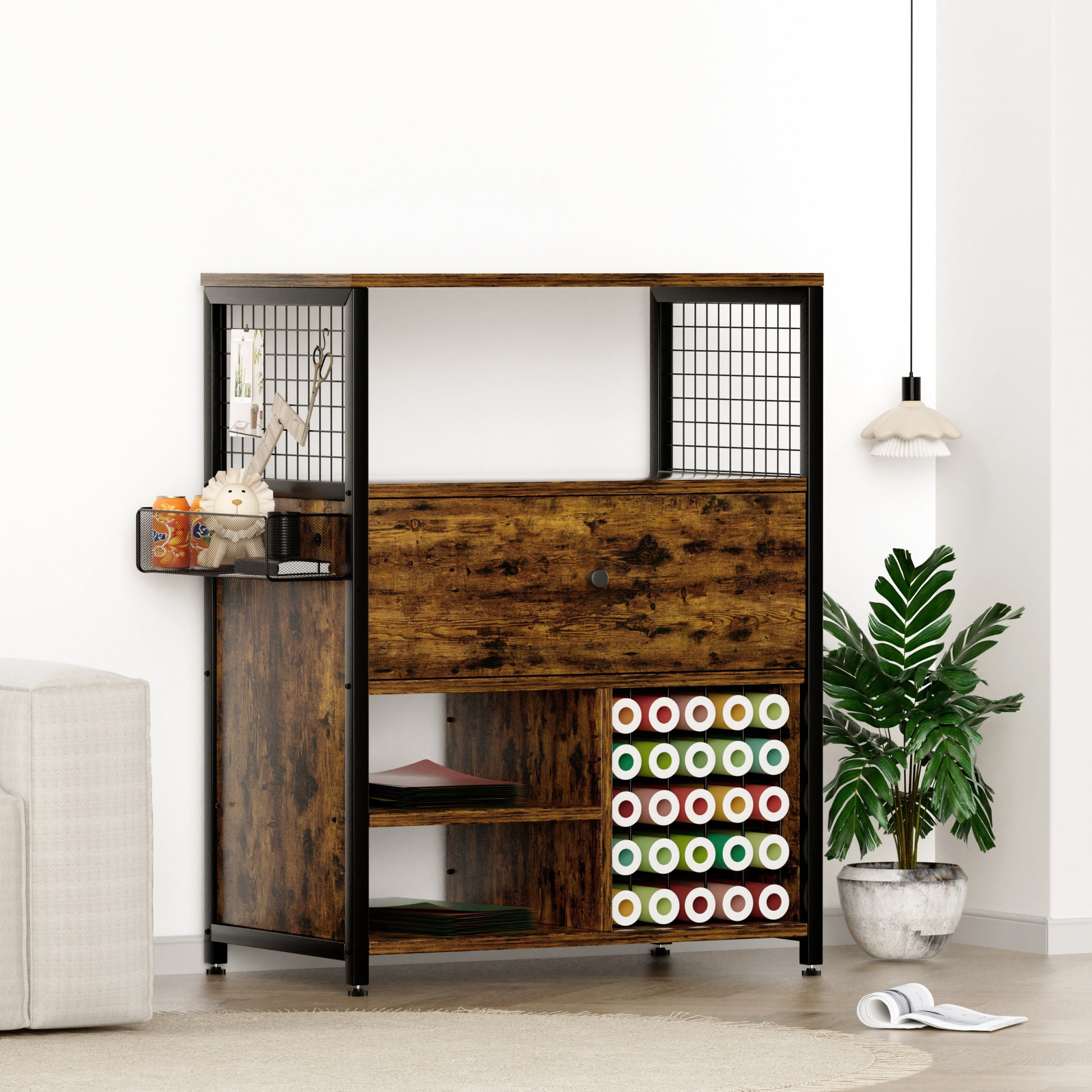 Craft Organization And Storage Cabinet Compatible With Cricut Machines, Crafting Cabinet With Drawer & 25 Vinyl Roll Holder, Craft Table Desk Workstation For Craft Room Home.Rustic Brown. Rustic Brown Particle Board
