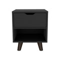 Crail Nightstand With 1 Open Storage Shelf, 1 Drawer And Wooden Legs Black 1 Drawer Bedroom Open Storage Modern Drawers Particle Board Engineered Wood