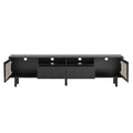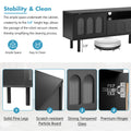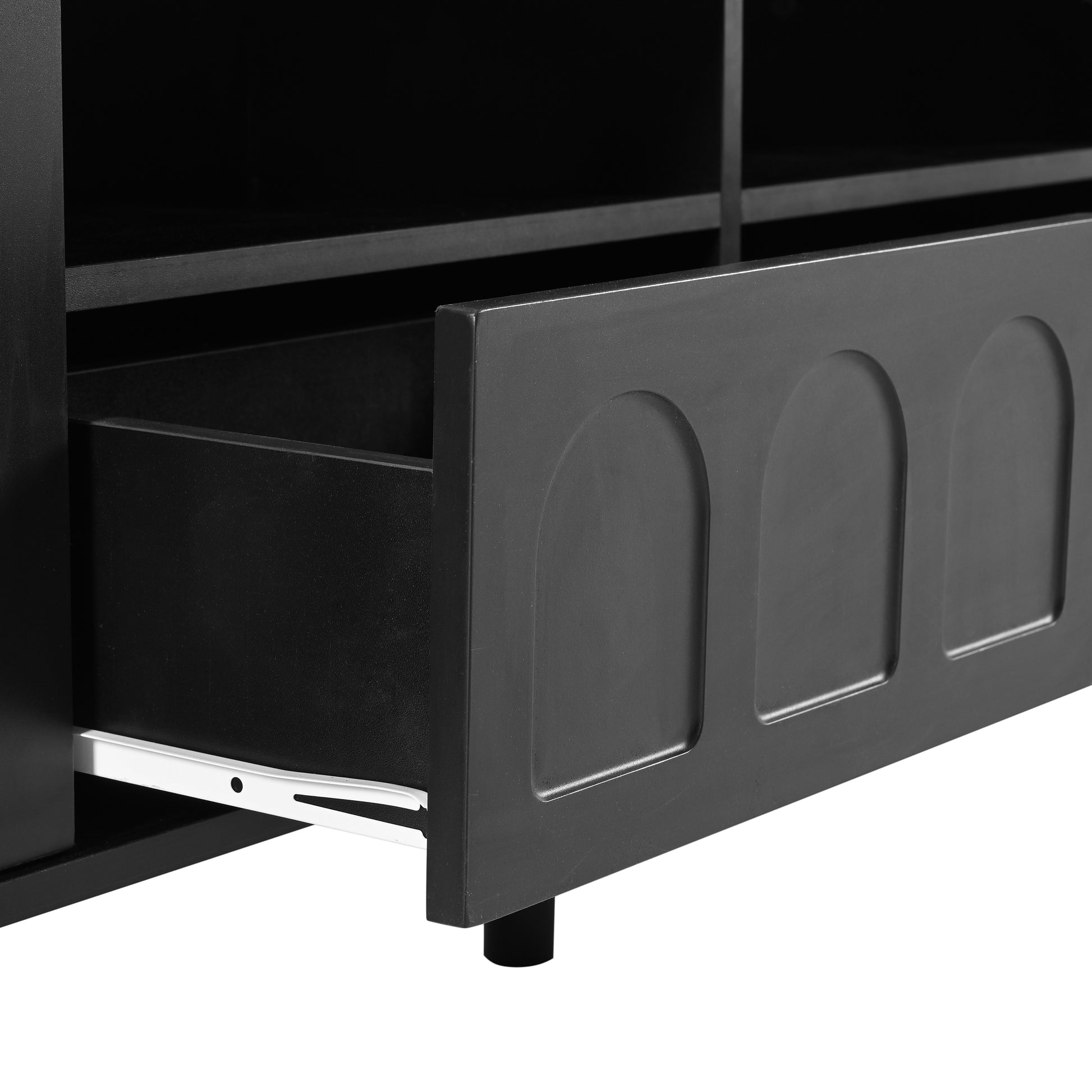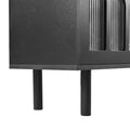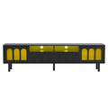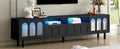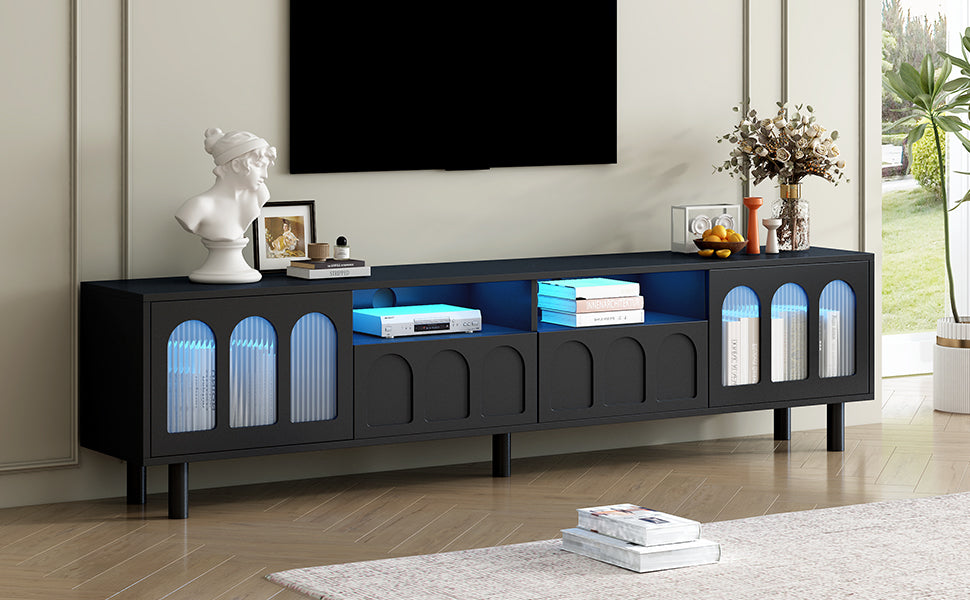 Cream Style Tv Stand With Led Light Strip For Tvs Up To 80'', Graceful Entertainment Center With 5 Solid Wood Legs, Large Storage Media Console With Fluted Tempered Glass Doors, Black Black 80 89 Inches Particle Board