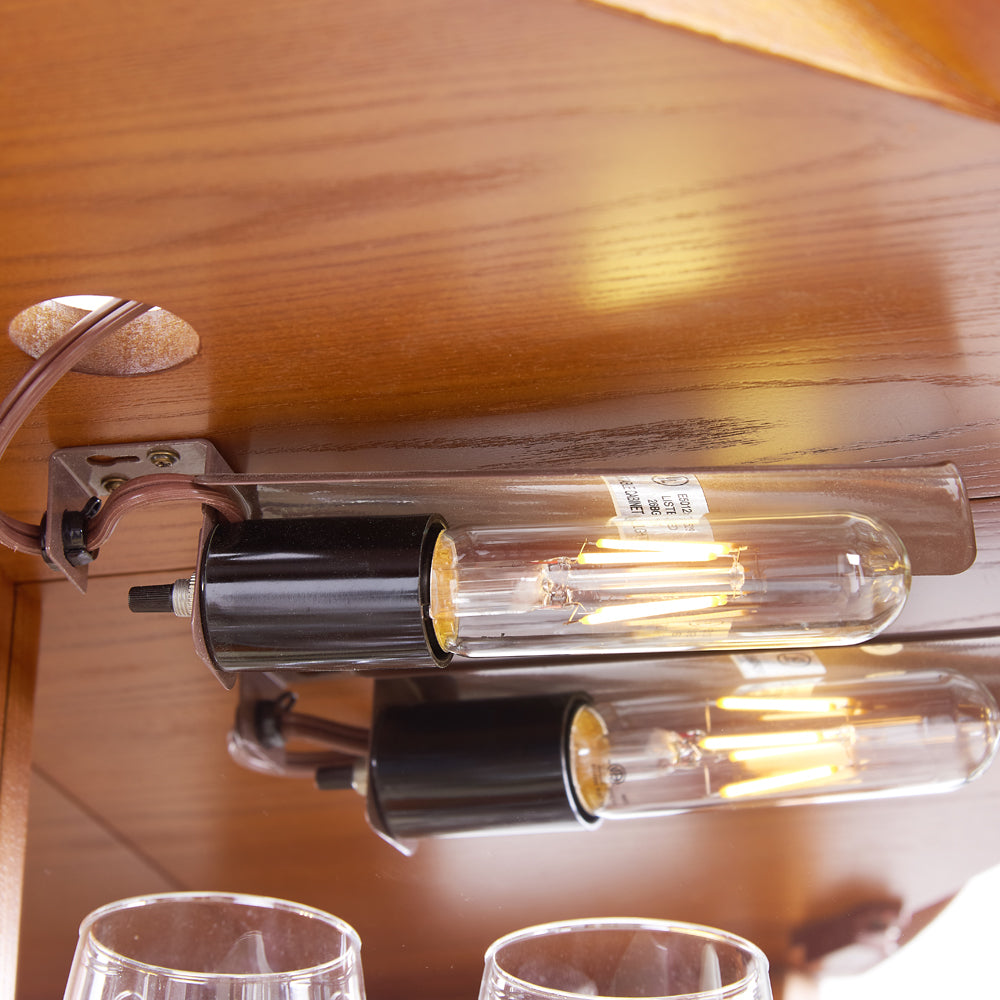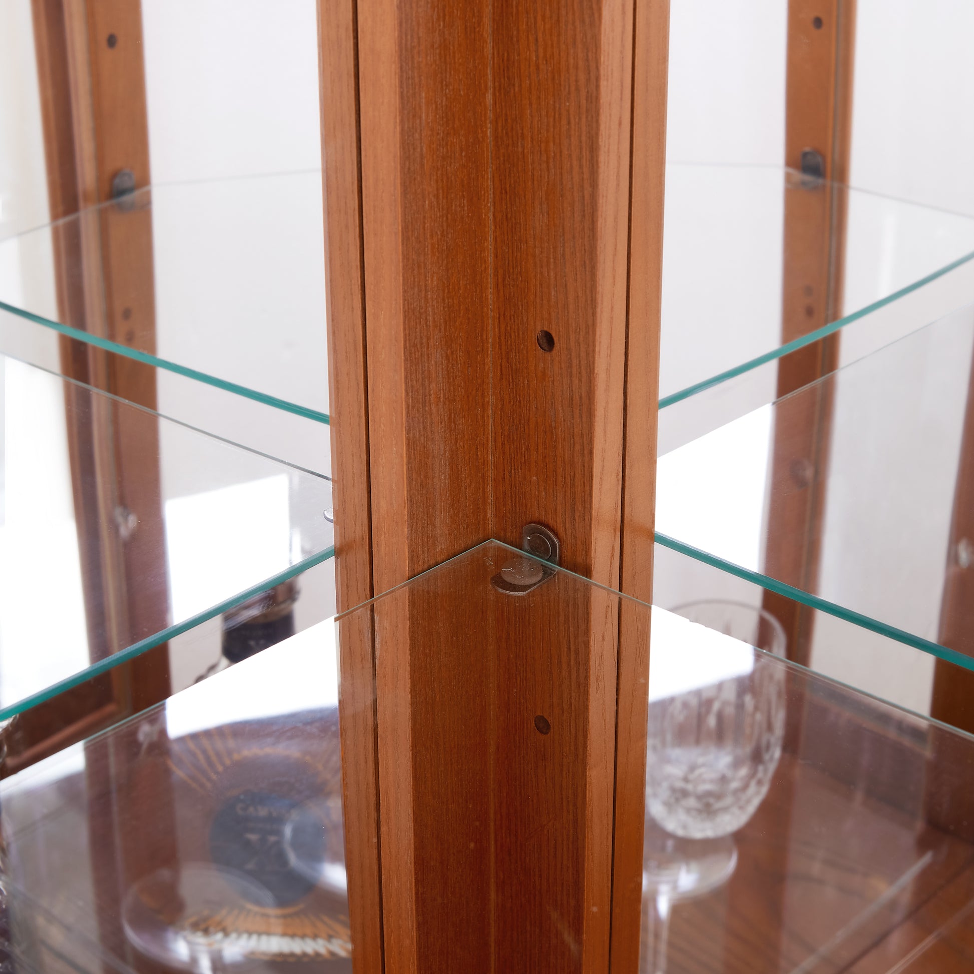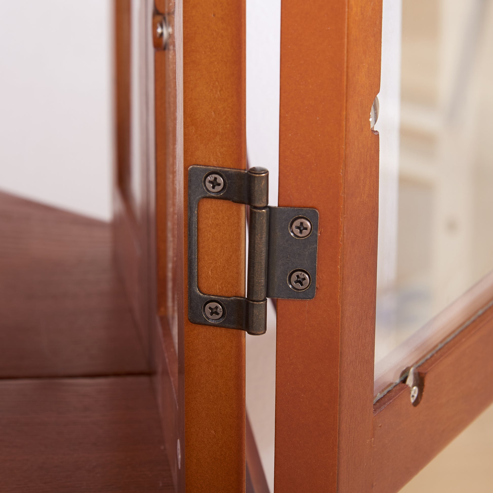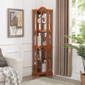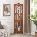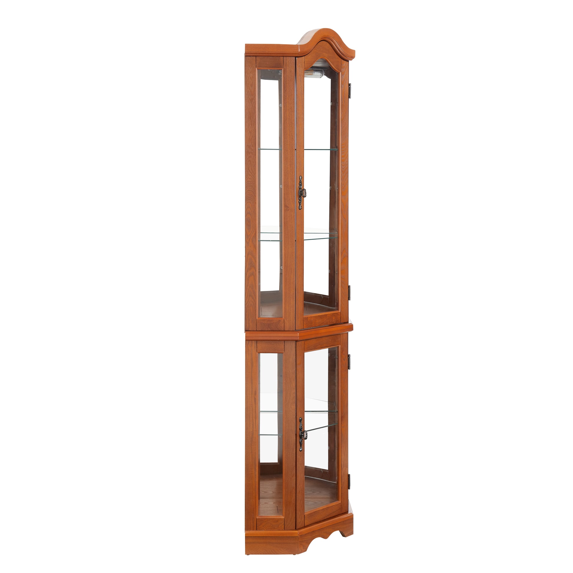 Curio Cabinet Lighted Glass Display Curio Cabinet W Tempered Glass Doors And Shelves, Crown Corner Cabinet With Bulb, Corner Storage Decoration For Living Room And Bedroom Oak Oak Mdf