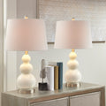 Curved Glass Table Lamp, Set Of 2 White Metal