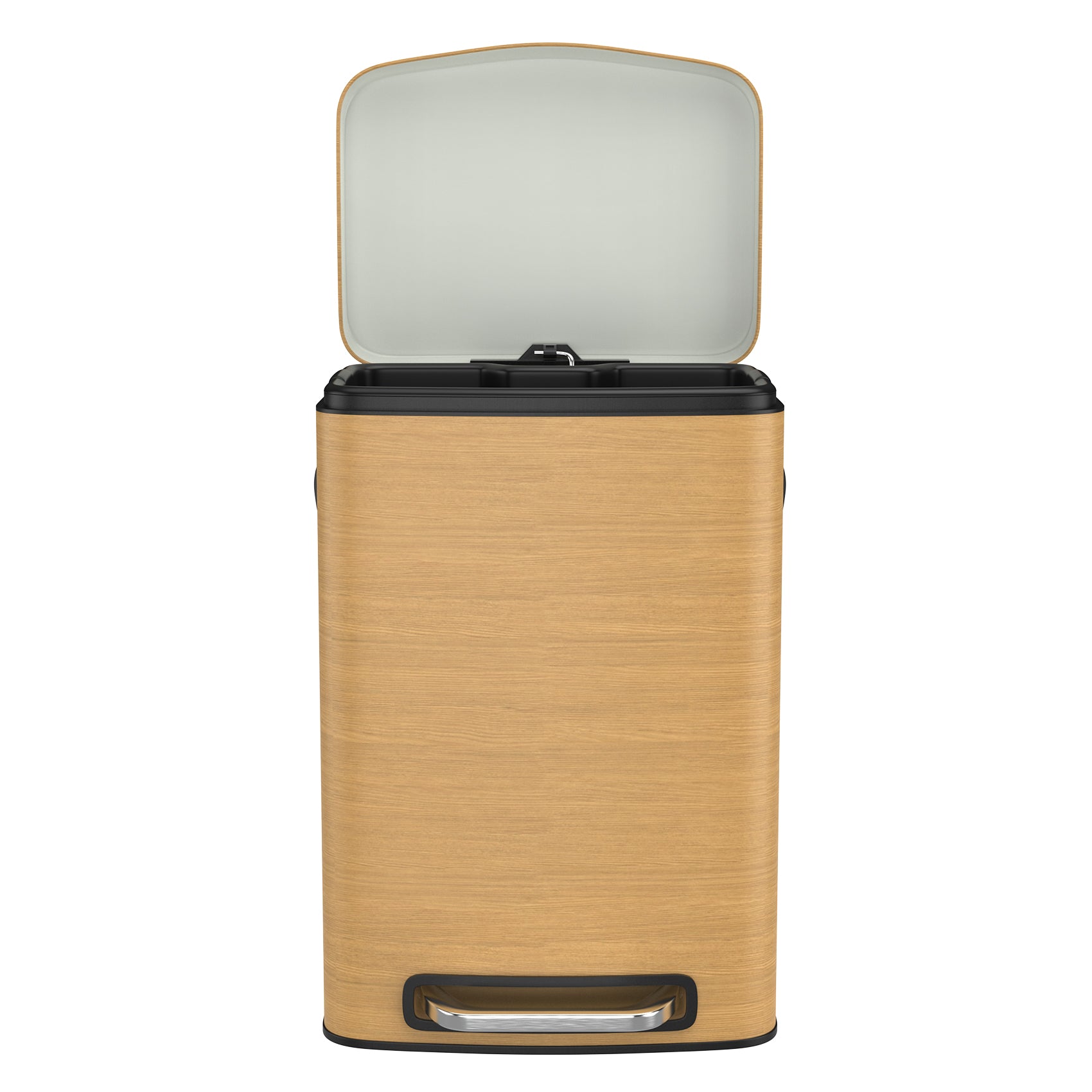 Curved Surface 13 Gallon 50L Kitchen Foot Pedal Operated Soft Close Trash Can Stainless Steel Rectangular Bustbin With 30 Garbage Bags Wood Texture Wood Steel