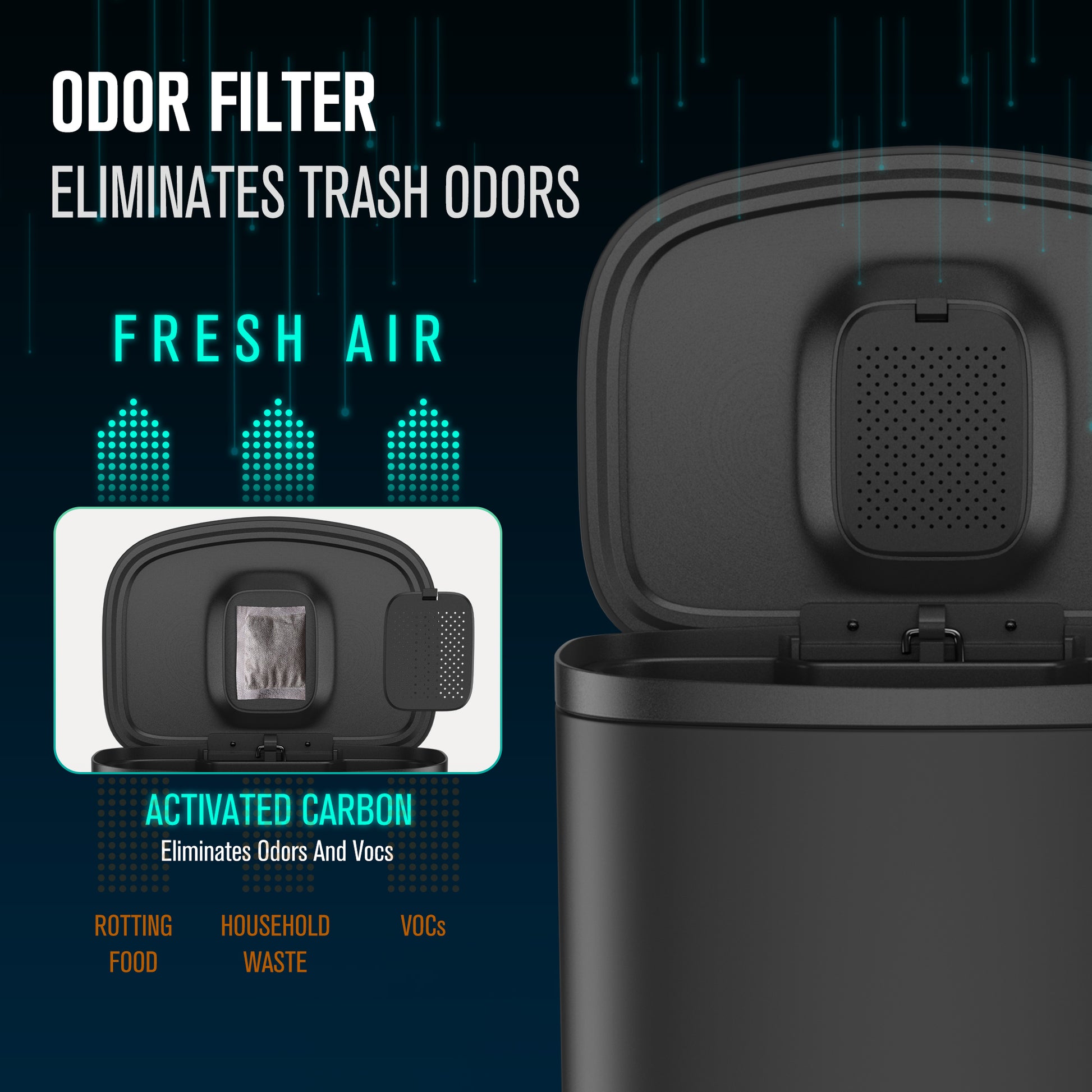 Curved Surface 13 Gallon 50L Kitchen Foot Pedal Operated Soft Close Trash Can Stainless Steel Rectangular Bustbin With 30 Garbage Bags Black Black Steel
