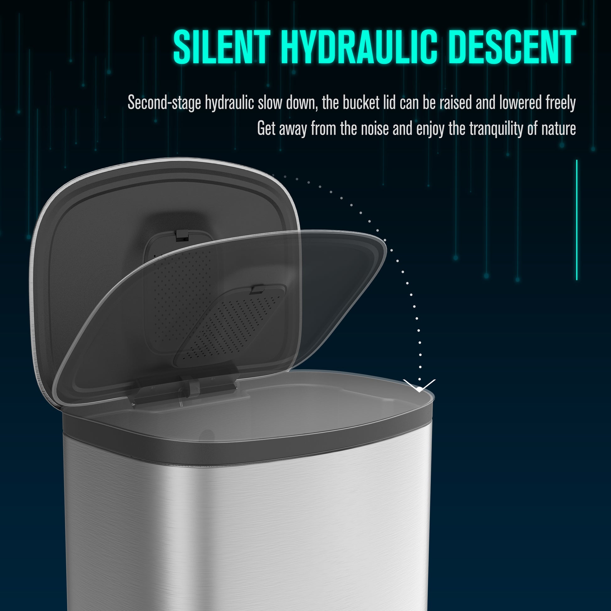 Curved Surface 13 Gallon 50L Kitchen Foot Pedal Operated Soft Close Trash Can Stainless Steel Rectangular Bustbin With 30 Garbage Bags Silver Silver Steel