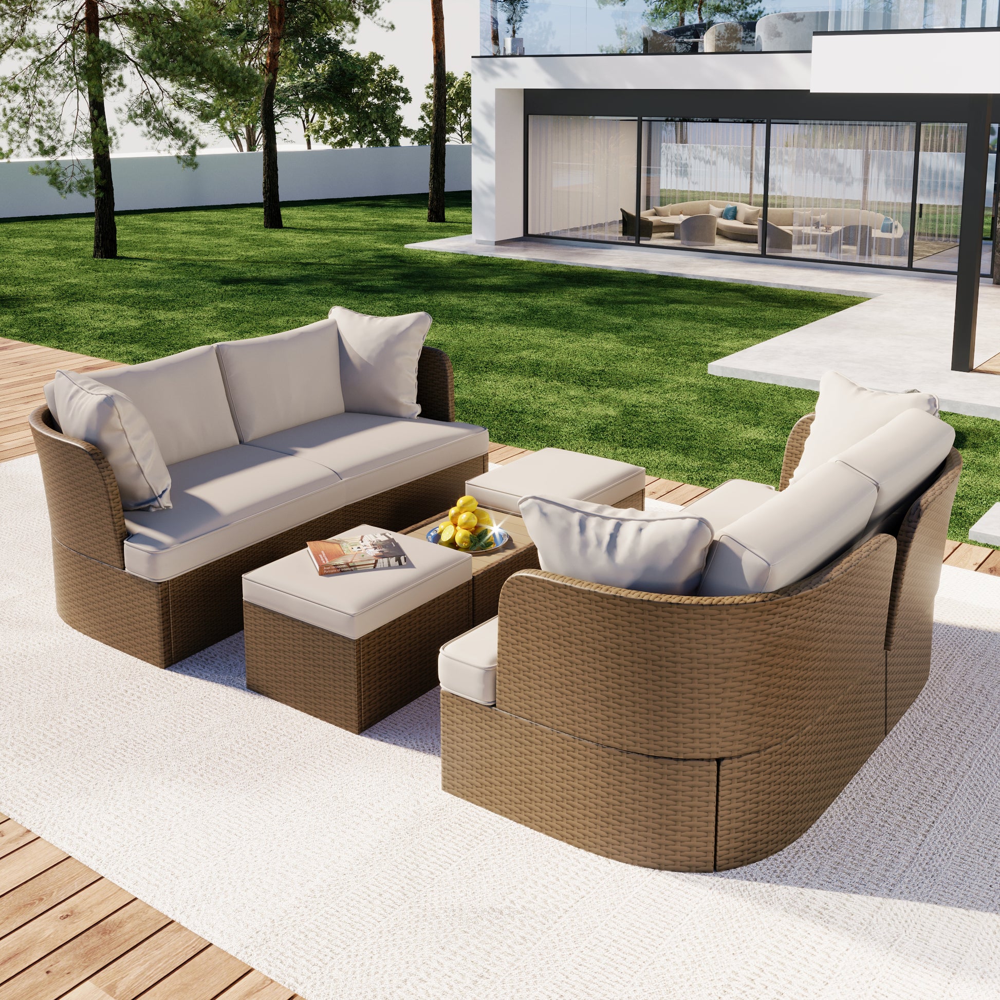 Customizable Outdoor Patio Furniture Set, Wicker Furniture Sofa Set With Thick Cushions, Suitable For Backyard, Porch. Yes Beige Garden & Outdoor Complete Patio Sets Hdpe