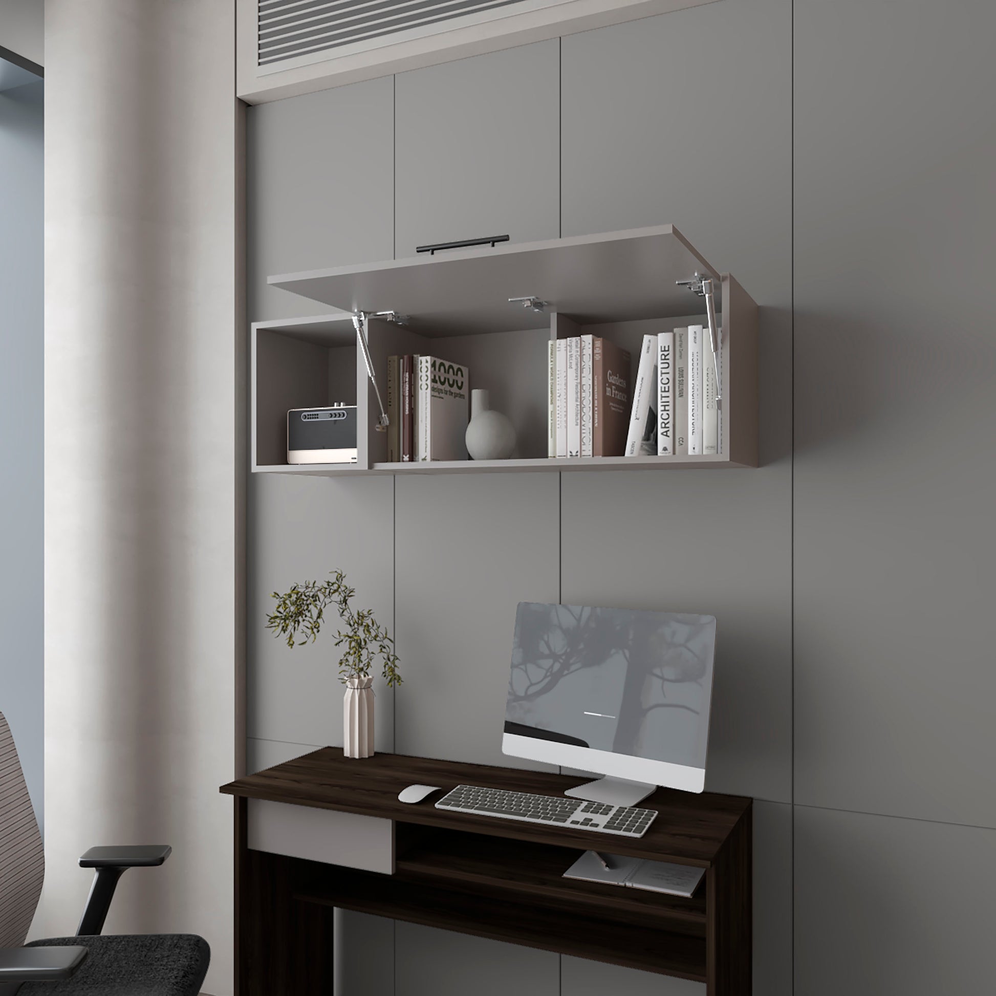 Cutter Wall Cabinet In Melamine With Pneumatic Arms And Open Storage, Smoke 1 2 Spaces Smoke Primary Living Space Wall Mounted Contemporary,Minimalist,Modern Particle Board Melamine